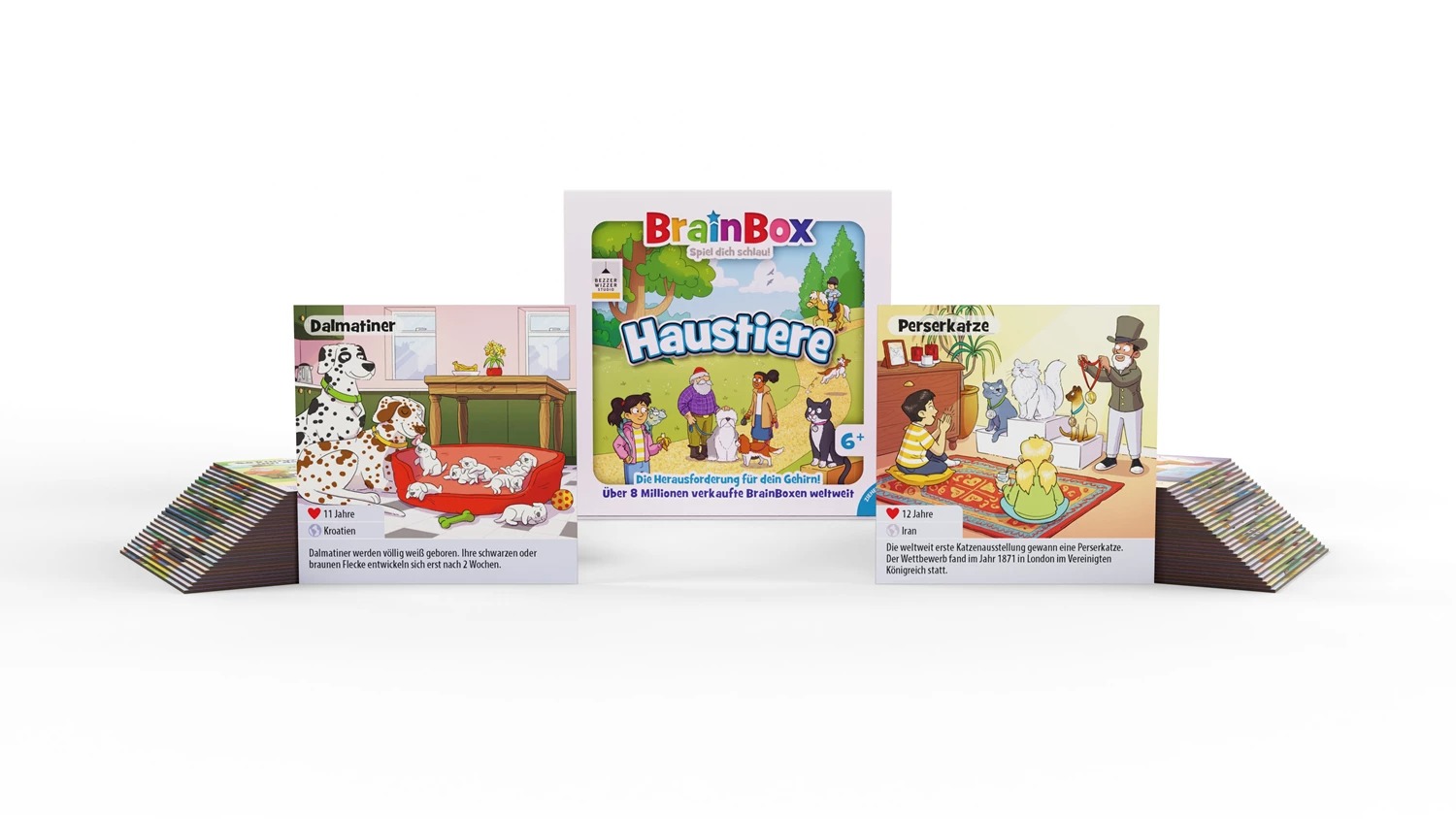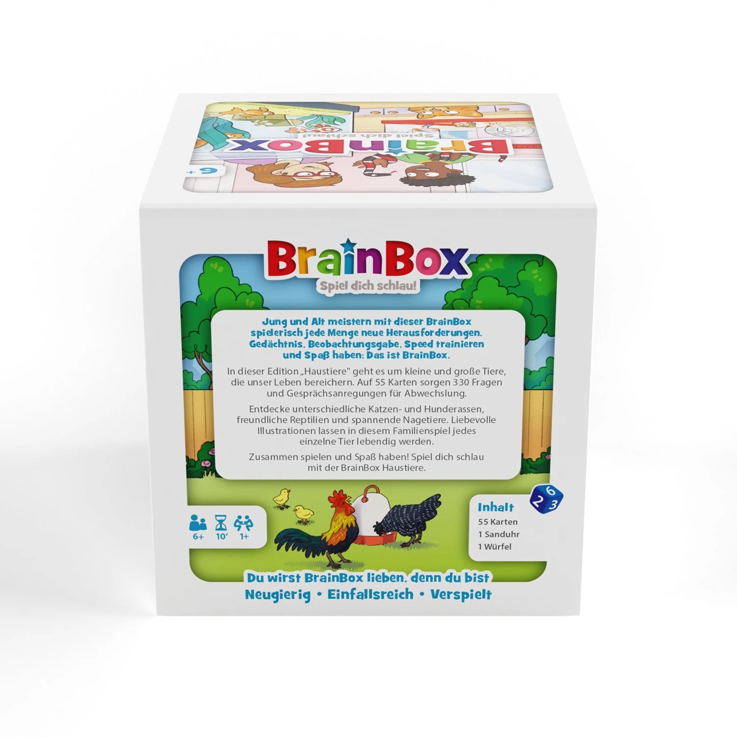 Mit der BrainBox „Haustiere“ entdecken Jung und Alt auf spielerische Weise spannende Herausforderungen! Dieses unterhaltsame Spiel fördert gezielt Gedächtnis, Konzentration, Beobachtungsgabe und Schnelligkeit – und das mit jeder Menge Spaß. In dieser Edition dreht sich alles um unsere tierischen Begleiter, ob groß oder klein. Auf 55 liebevoll gestalteten Karten warten insgesamt 330 Fragen, die nicht nur Wissen vermitteln, sondern auch zu lustigen Gesprächen und abwechslungsreichem Spielspaß anregen. Gemeinsam spielen, lernen und lachen – mit der BrainBox „Haustiere“ wird Wissen zum Vergnügen!
