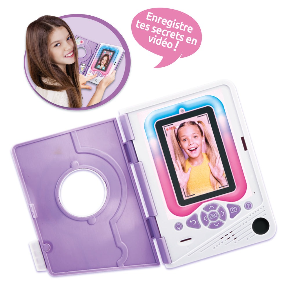 Dein ganz persönliches Geheimnisbewahrer! Dieses elektronische Video-Tagebuch ist mehr als nur ein klassisches Tagebuch – es kombiniert Kreativität, Sicherheit und modernste Technik. Halte deine Erlebnisse als Video fest, knipse coole Fotos oder peppe deine Aufnahmen mit lustigen Filtern und spektakulären Lichteffekten auf.