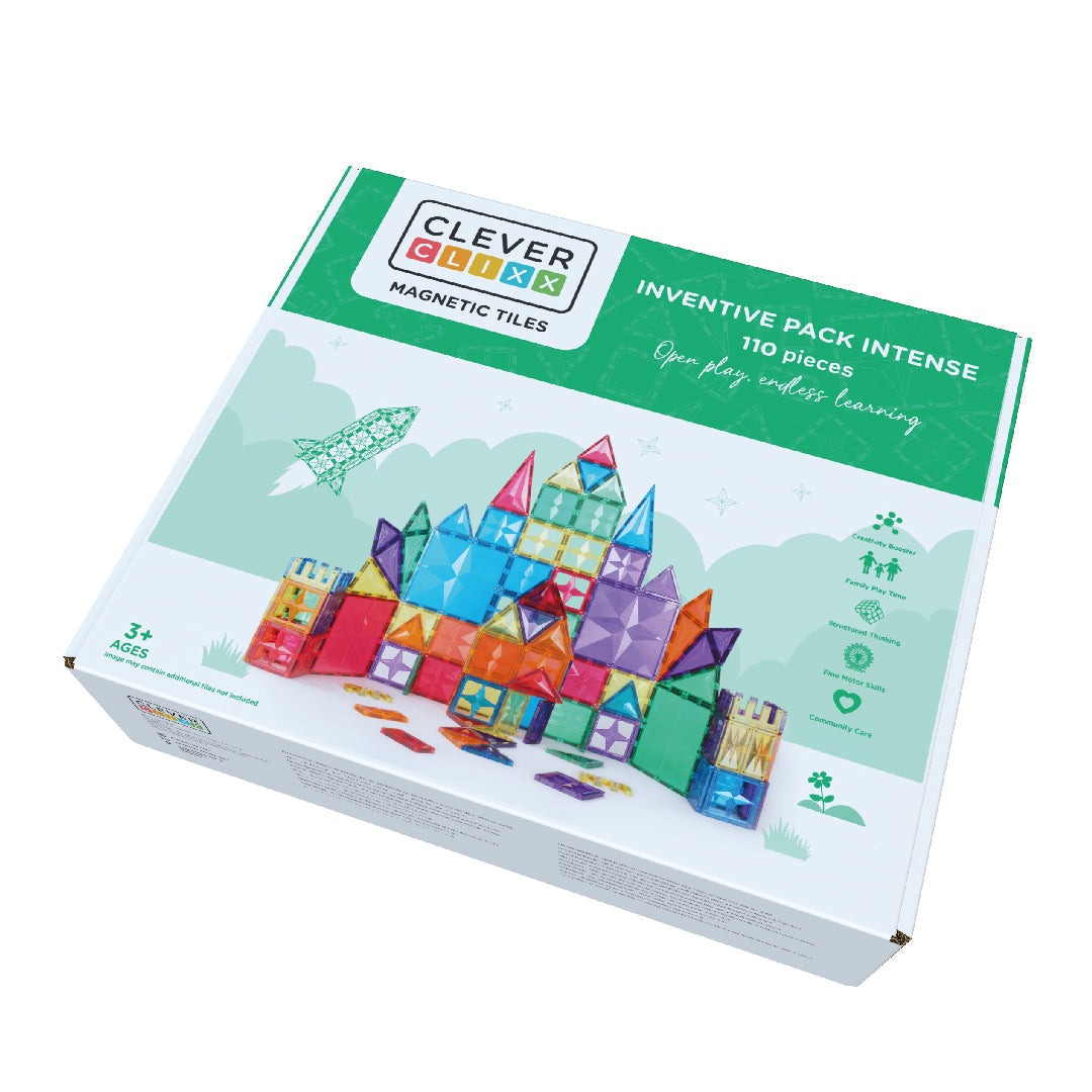Das Cleverclixx Inventive Pack (110-teilig) bietet viele bunte magnetische Bauteile für endlose Bau- und Spielideen. Kinder können verschiedene Formen und Farben entdecken und gemeinsam mit der Familie große, kreative Konstruktionen erschaffen – ideal für fantasievolles Bauen und Spielen.