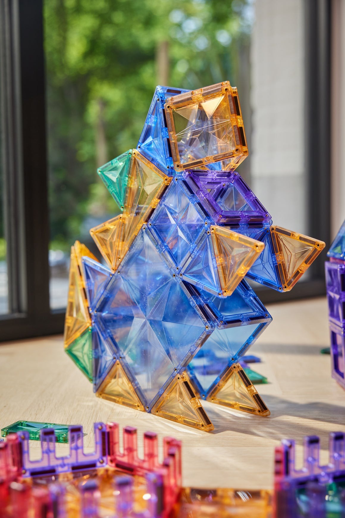 Noch mehr Kreativität: Baue an magnetischen Flächen wie Heizkörpern oder Tafeln und gestalte vertikale Kunstwerke. Mit abwaschbaren Markern können zusätzlich Buchstaben, Zahlen oder eigene Designs gezeichnet werden – für stundenlangen Bau- und Spielspaß!