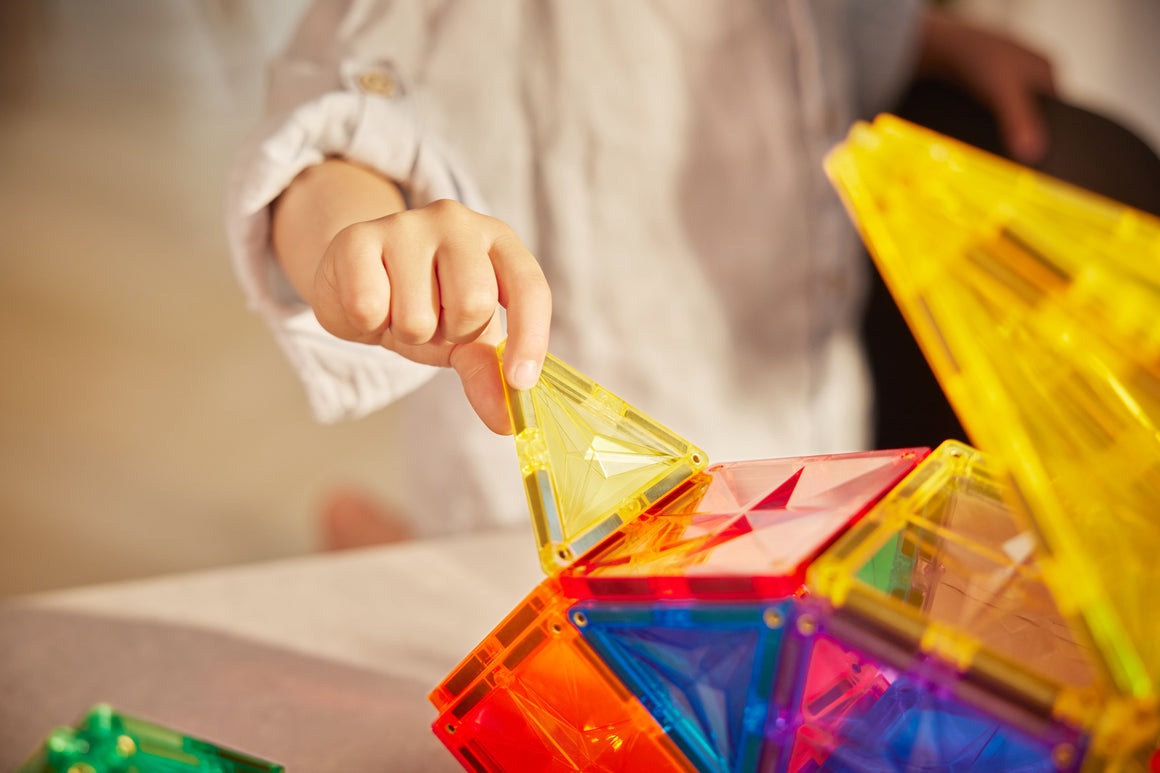 Noch besser: Baue direkt an magnetischen Oberflächen wie Heizkörpern oder Tafeln und gestalte vertikale Kunstwerke. Mit abwaschbaren Markern können zusätzlich Buchstaben, Zahlen und Muster gezeichnet werden – für noch mehr Kreativität und Spaß!