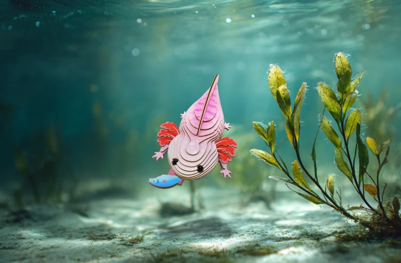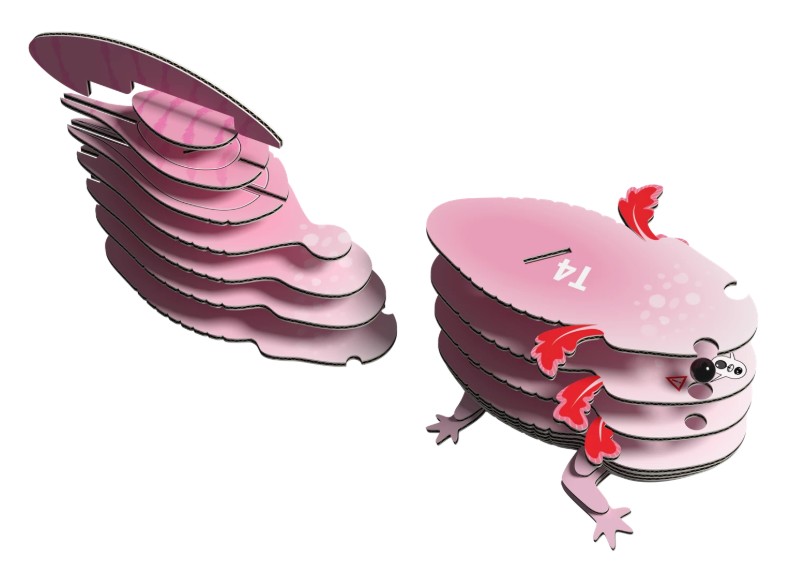 Mit dem 3D Bastelset Axolotl von EUGY können Kinder und Erwachsene kreativ werden. Aus biologisch abbaubarem Wellkarton entsteht Schritt für Schritt ein detailreiches Axolotl in 3D.