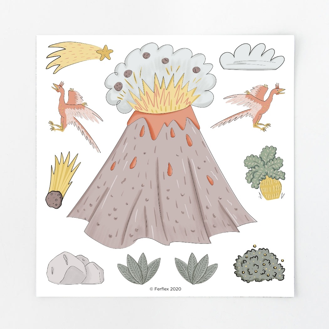 Ein unterhaltsames Spiel, das aus 52 Magneten besteht, um die Welt der Dinosaurier zu entdecken, mit dem Kinder Szenen reproduzieren oder Geschichten erfinden können.