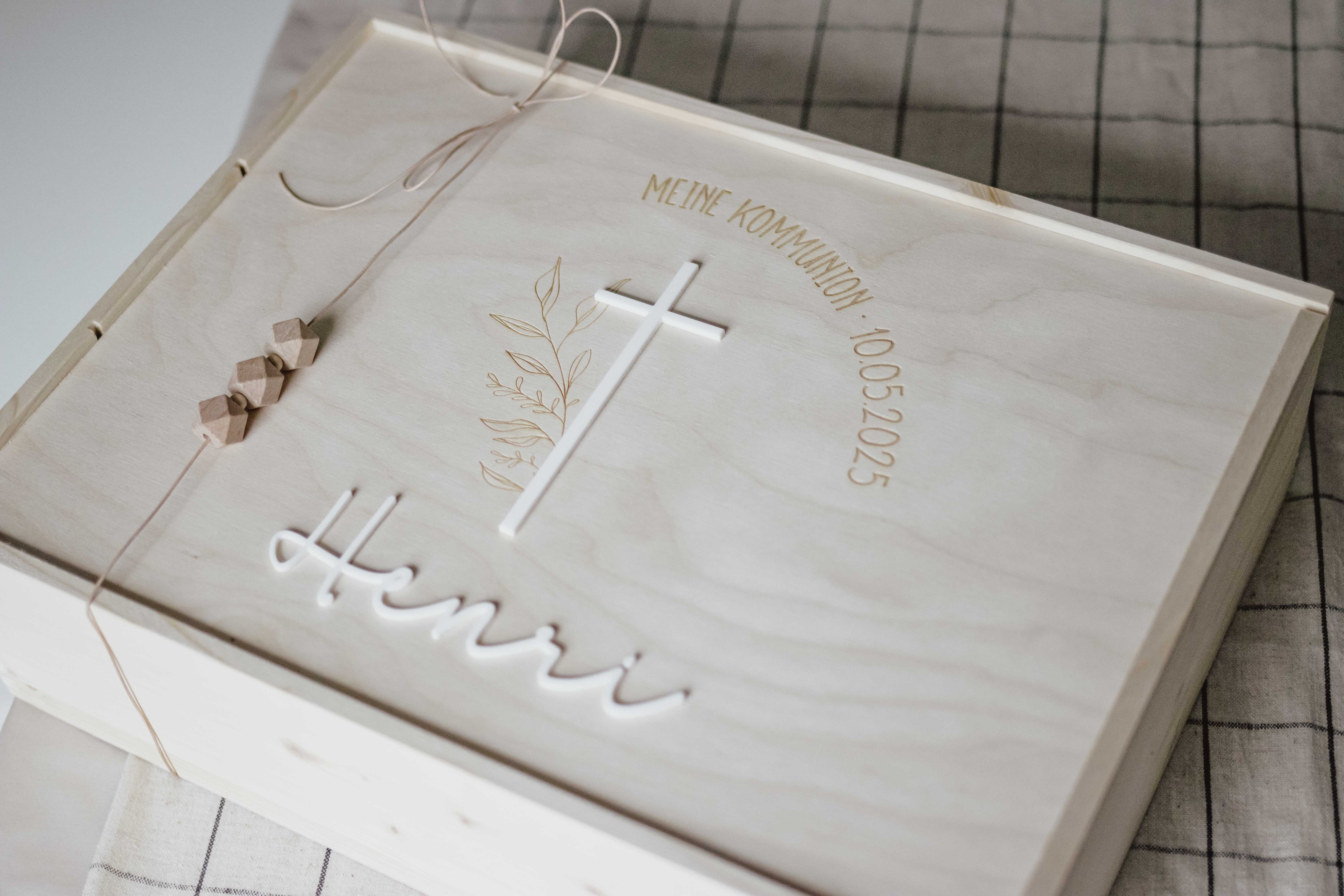 Die Erstkommunion ist ein ganz besonderer Tag – und genau dafür findest du bei uns liebevoll ausgewählte Geschenkideen. Unsere Kategorie bietet eine schöne Auswahl an besonderen Andenken: von personalisierten Erinnerungsboxen über festliche Kerzen bis hin zu stilvollen Cake Toppern, Holzbooten oder kleinen Spieledosen. Alle Artikel sind mit viel Liebe gestaltet. Ob als Geschenk von den Eltern, der Patentante oder Großeltern – hier findest du bedeutungsvolle Erinnerungsstücke, die Herz und Seele ansprechen.