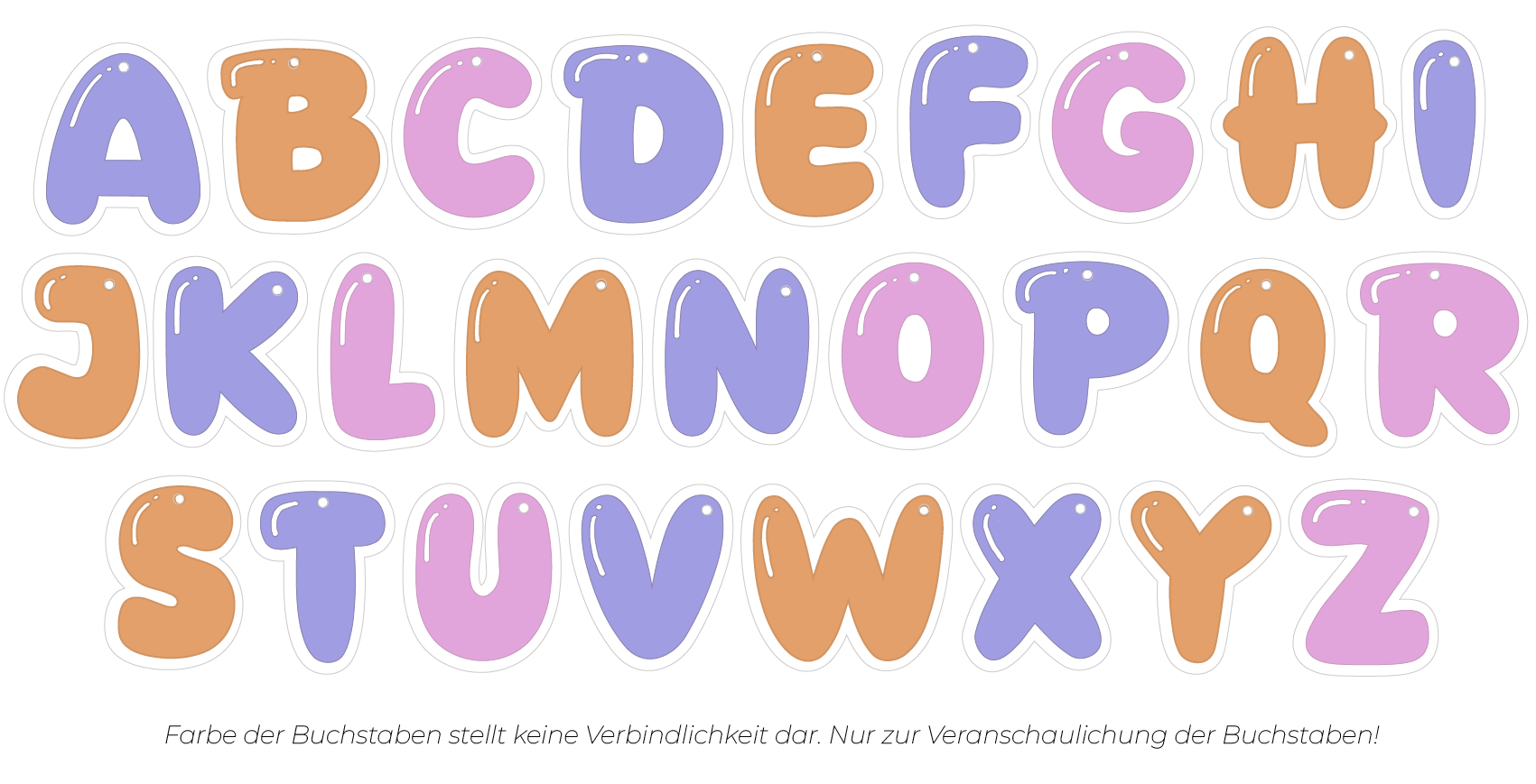 Jeder Buchstabe wird mit einem praktischen Kugelkettchen geliefert und lässt sich dadurch leicht befestigen.