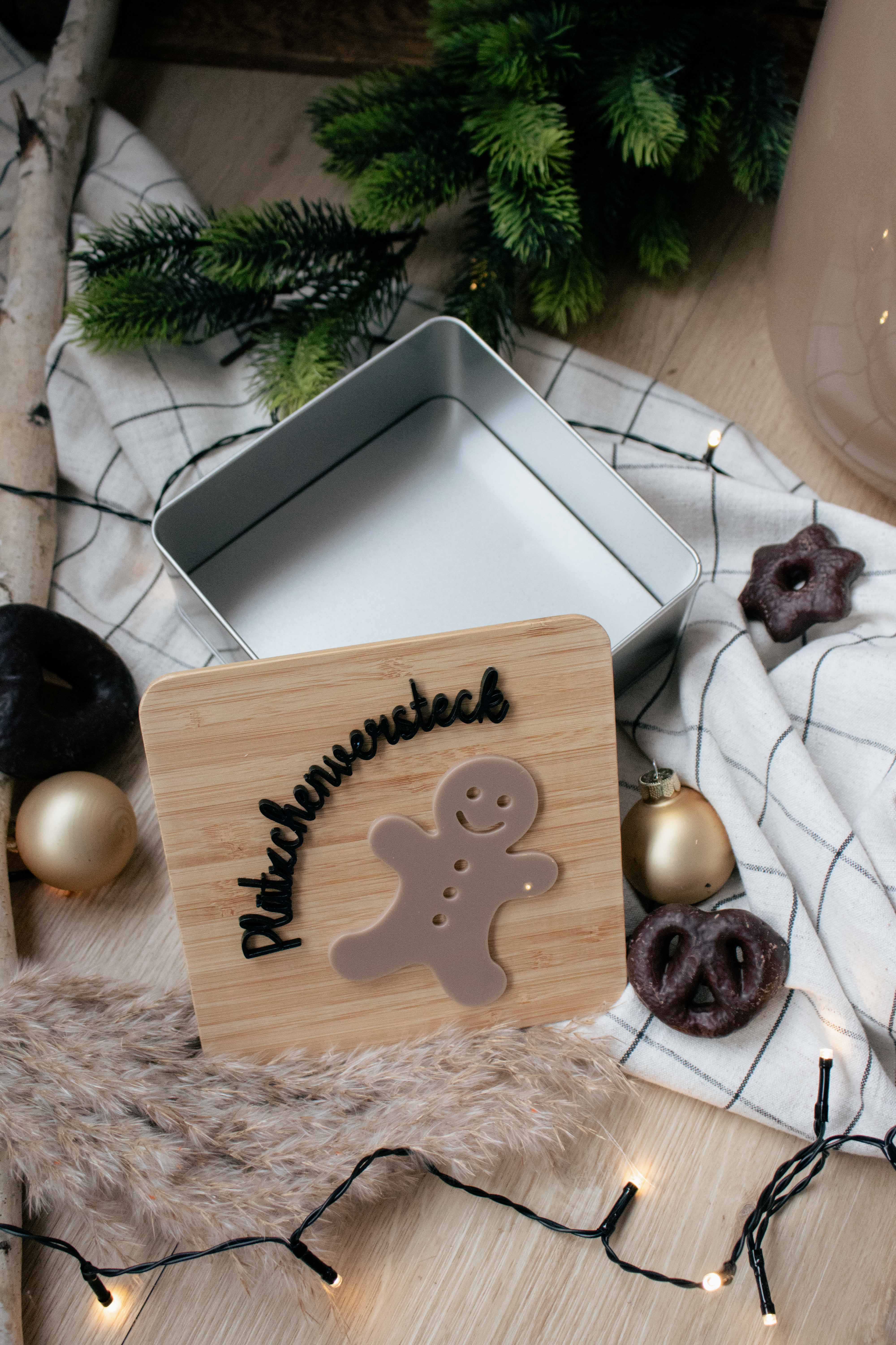 Verschenke deine Plätzchen stilvoll in dieser schönen Blechdose mit Bambusdeckel.