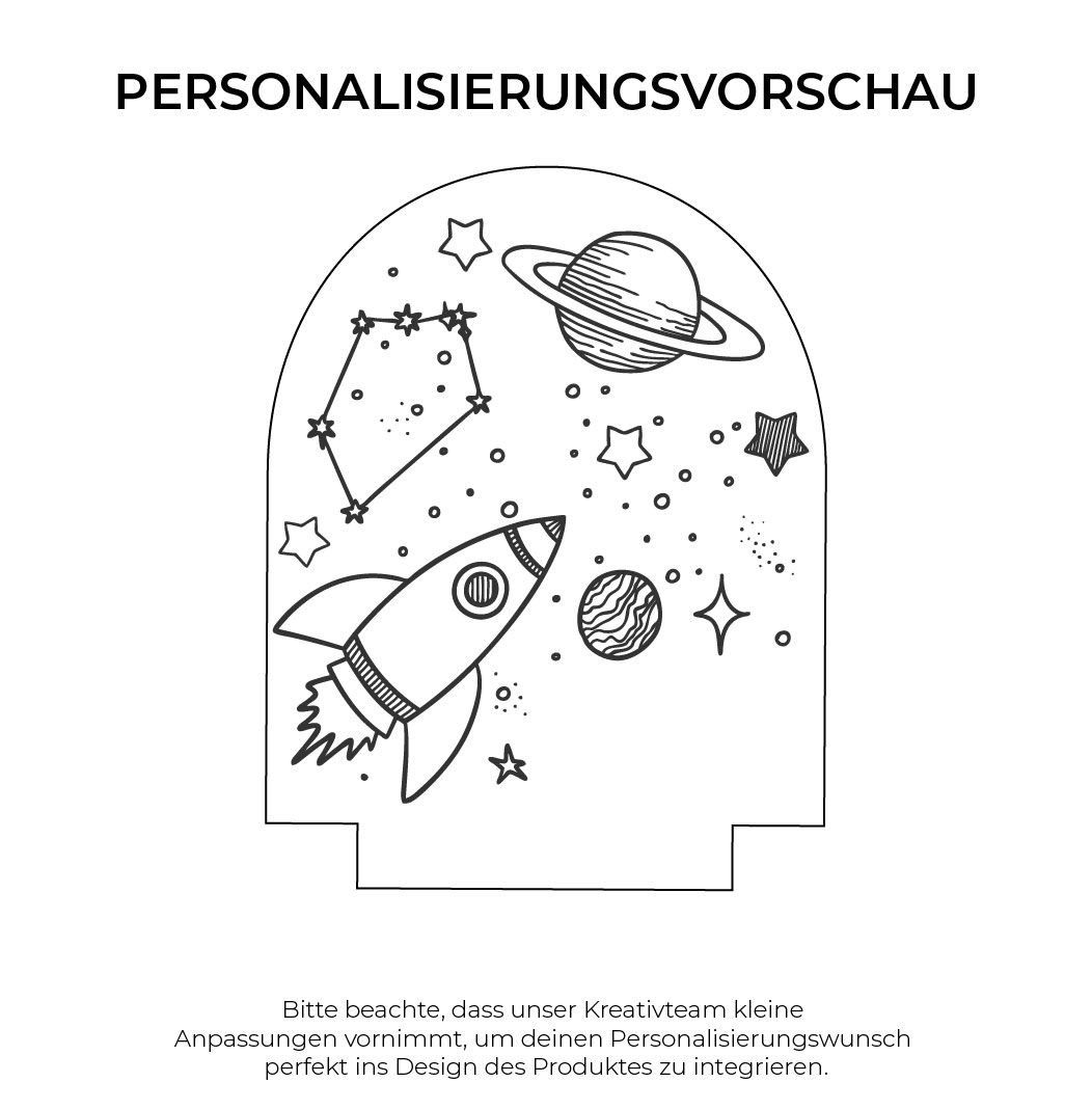 Wunderschöne personaliserte Nachttischlampe im Weltraum-Design.
