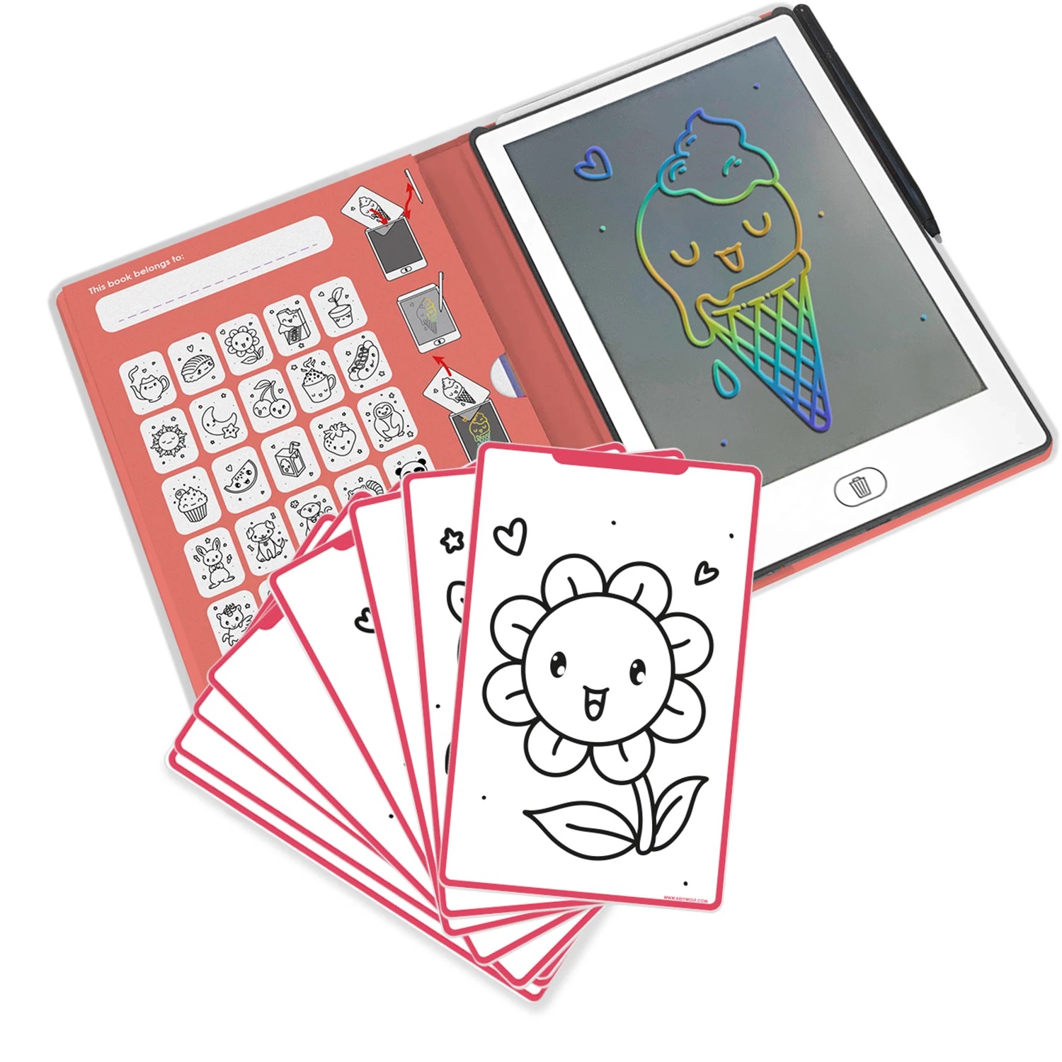 Mit dem Kidydraw-Mini Kawaii wird Malen zu einem farbenfrohen Erlebnis voller Spaß und Fantasie! Die handliche digitale Designtafel mit 8,2"-LCD-Display lädt Kinder dazu ein, ihrer Kreativität freien Lauf zu lassen. Einfach eine der 30 liebevoll gestalteten Illustrationen auswählen und mit dem beiliegenden Stift nachzeichnen. Wenn das Kunstwerk fertig ist, genügt ein Knopfdruck, um die Fläche wieder zu löschen – und schon kann die nächste Zeichnung entstehen.