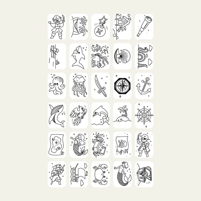 Themenbezogene Zeichen-Vorlagen: Wilde Tiere & Piraten