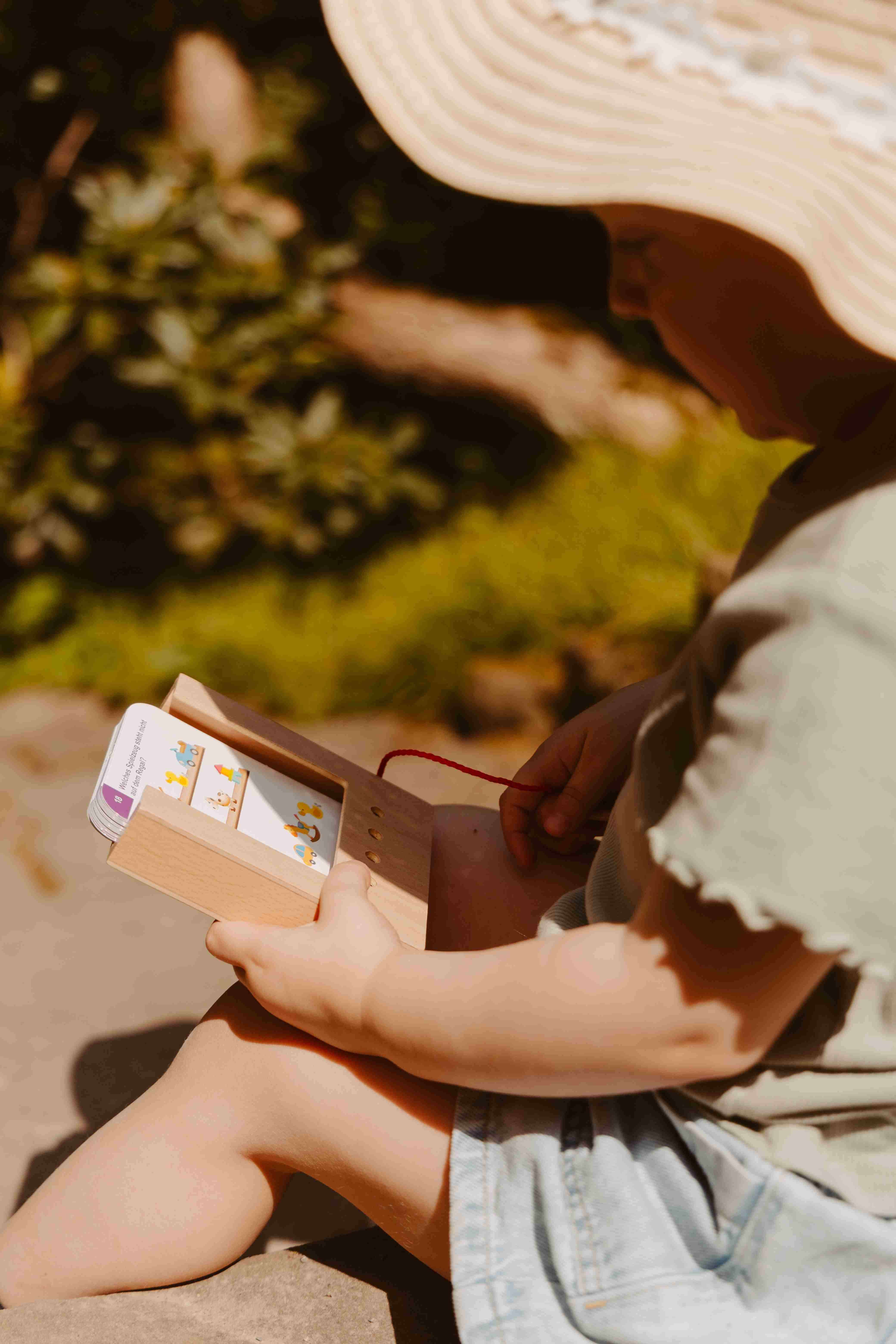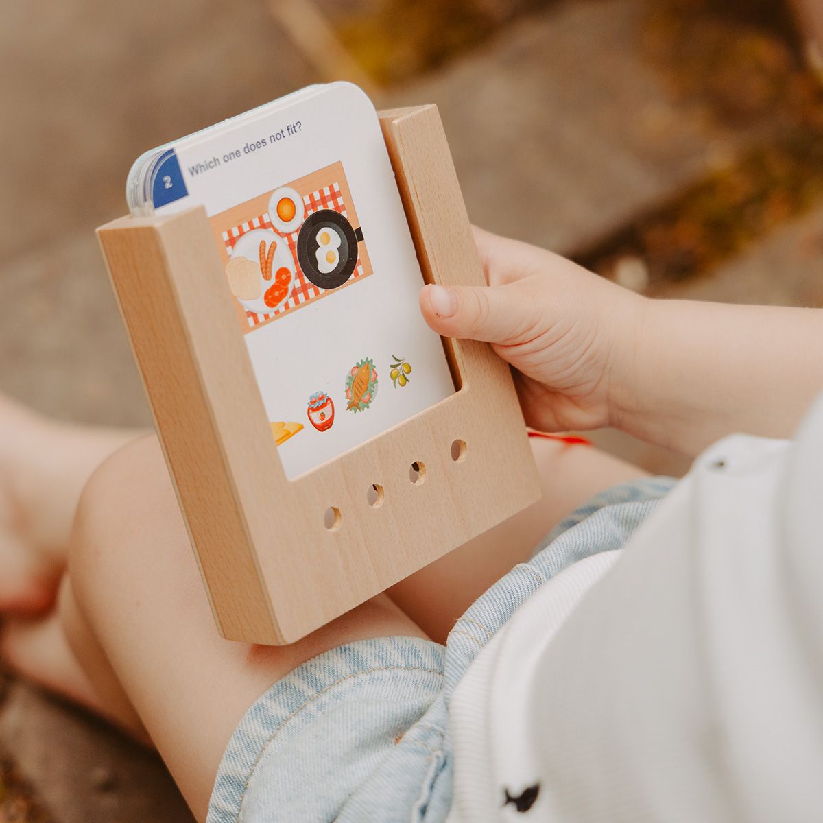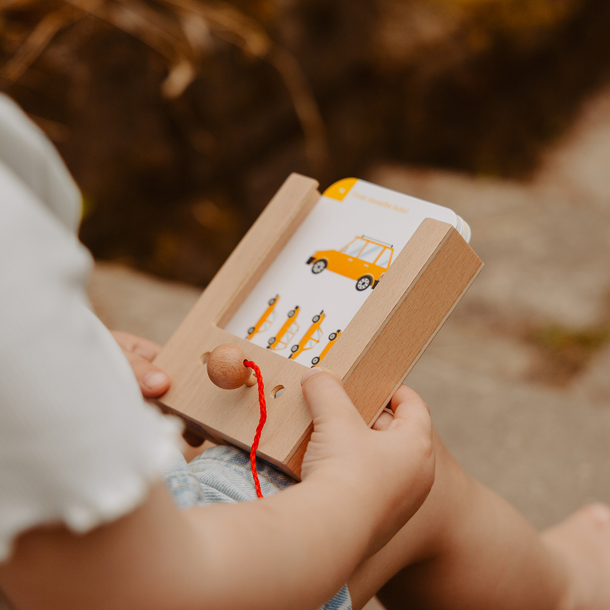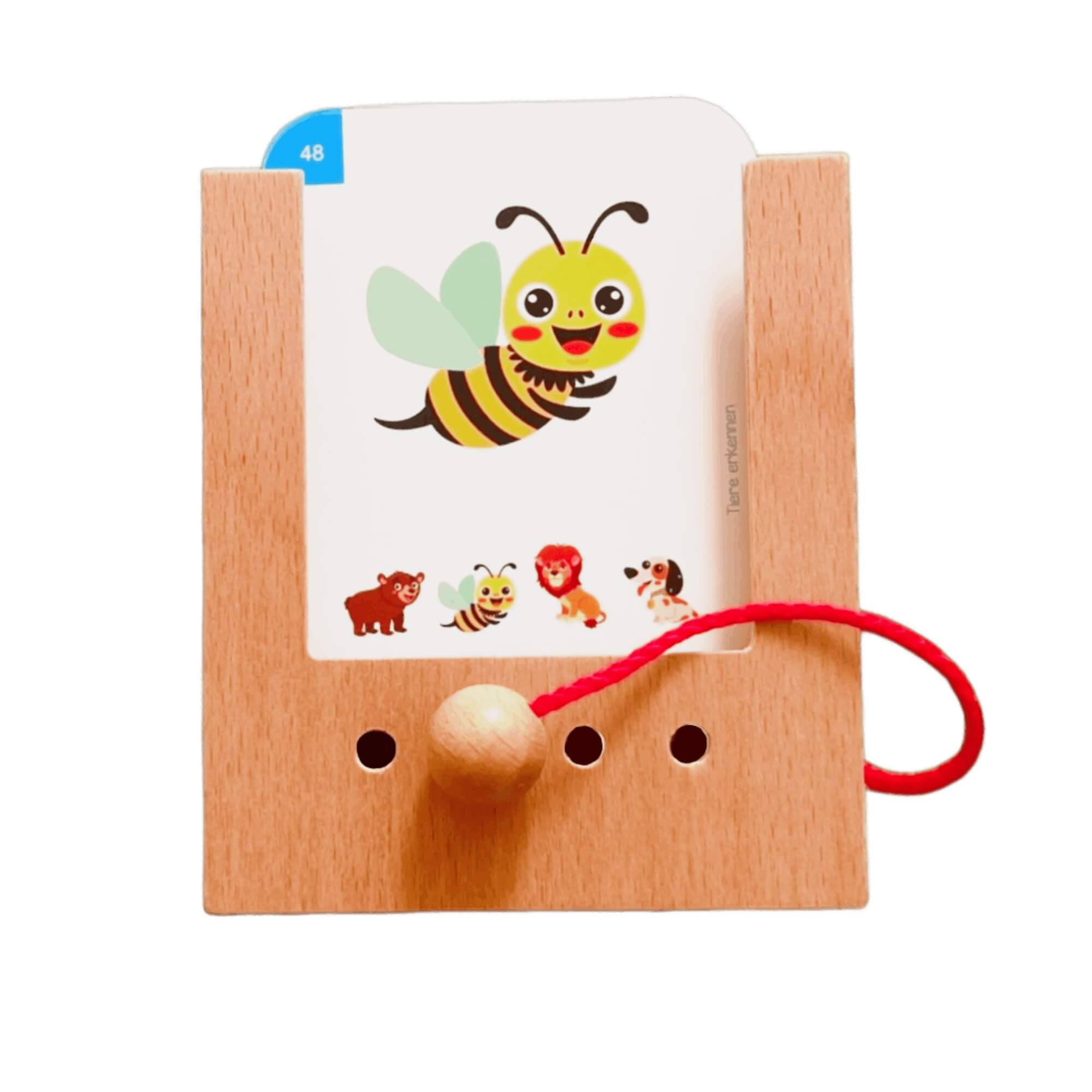 - Stecke den Holzstift zur richtigen Antwort ins Loch.