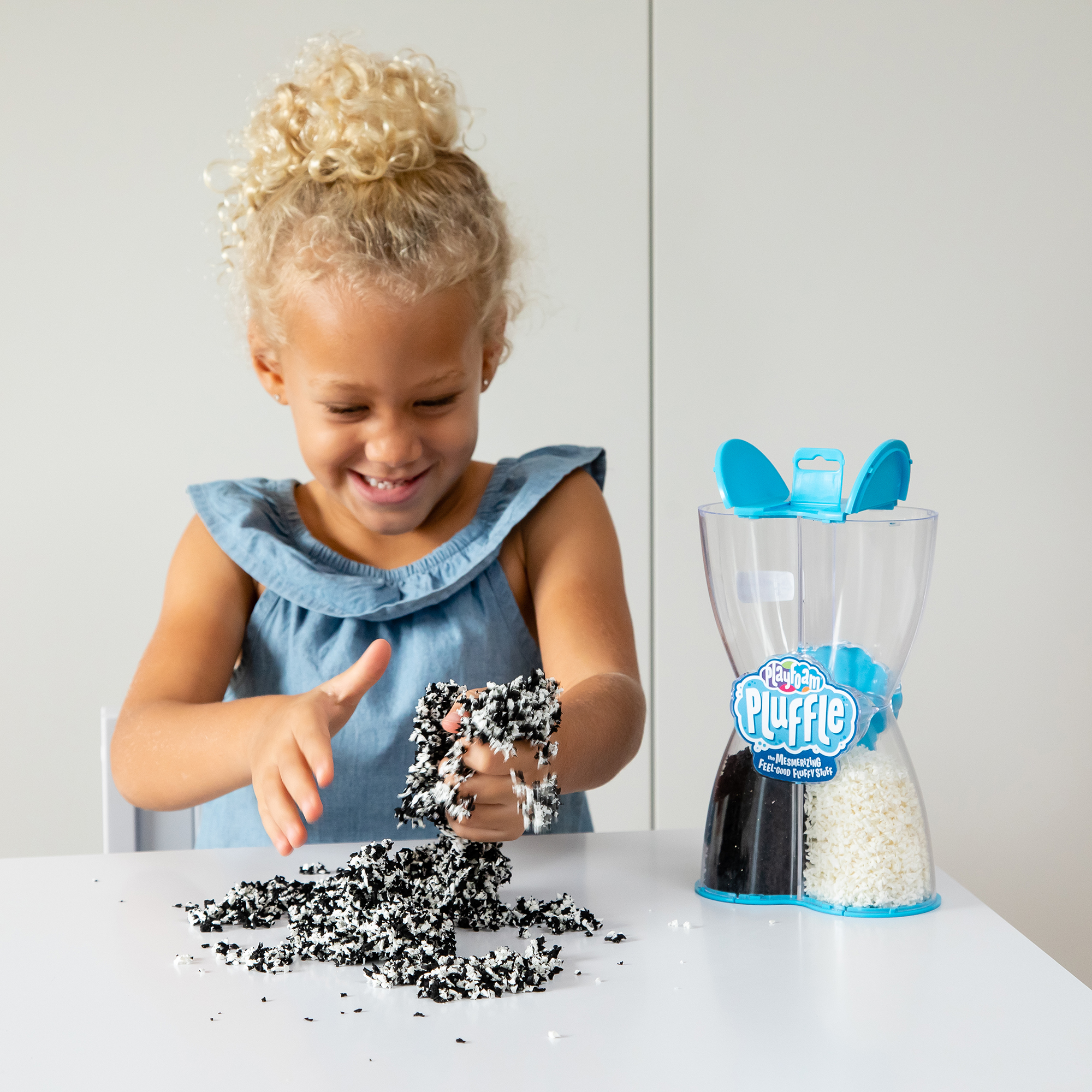 Fließen, fühlen, staunen – Pluffle® Twist Black and White ist das faszinierend weiche Sensorikmaterial, das mit seiner superweichen, fluffigen Textur und dem faszinierenden „lebendig schmelzenden“ Effekt begeistert.