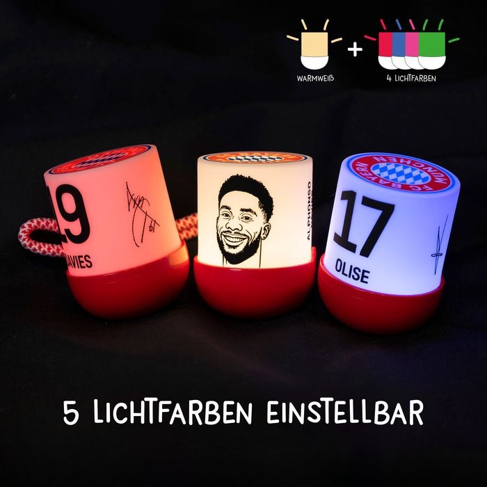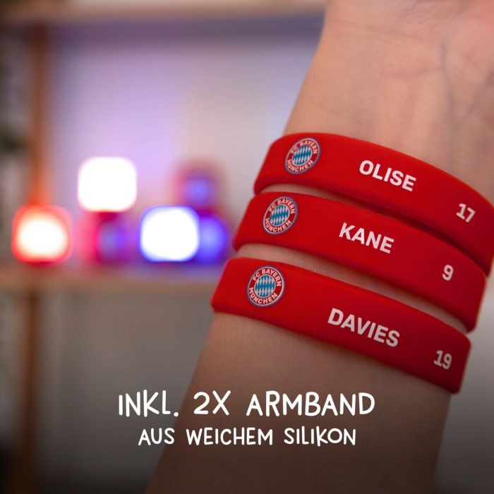 Jedes Licht wird mit einem Anhänger geliefert, um es an Rucksäcken, Taschen oder Kleidung zu befestigen. Zusätzlich gibt es ein Silikonarmband für jeden Spieler, ideal zum Sammeln und Tauschen. Als besonderes Highlight steckt in jeder 24. Box das FCB-Maskottchen – ein seltener Schatz für echte Bayern-Fans.
