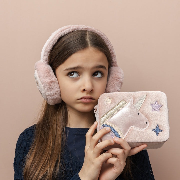 Magischer Ohrenschutz für kleine Einhorn-Fans! ✨ Die Mimi & Lula Ohrwärmer „Unicorn“ halten Kinderohren an kühlen Tagen warm und kuschelig. Mit superweichem Polster und einem verstellbaren Stirnband für wachsenden Komfort bieten sie den ganzen Tag über ein angenehmes Tragegefühl. Perfekt für Schulmorgen oder winterliche Abenteuer am Wochenende.