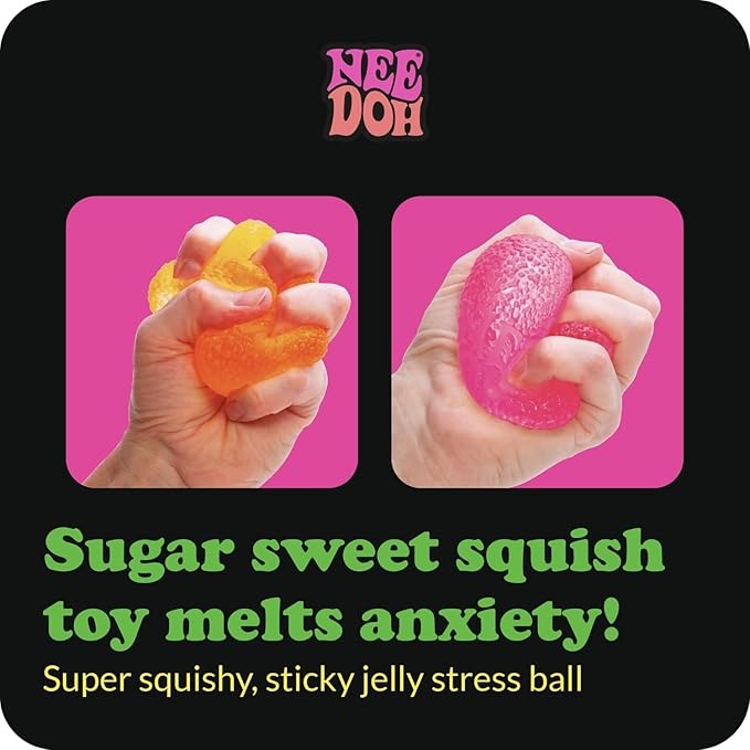 Die feste, dennoch angenehm formbare Füllung bietet ein intensives Squish-Erlebnis und unterstützt dabei, Stress abzubauen und zur Ruhe zu kommen. NeeDoh® kann helfen, Angstgefühle zu reduzieren sowie Konzentration, Aufmerksamkeit und Fokussierung zu fördern.
