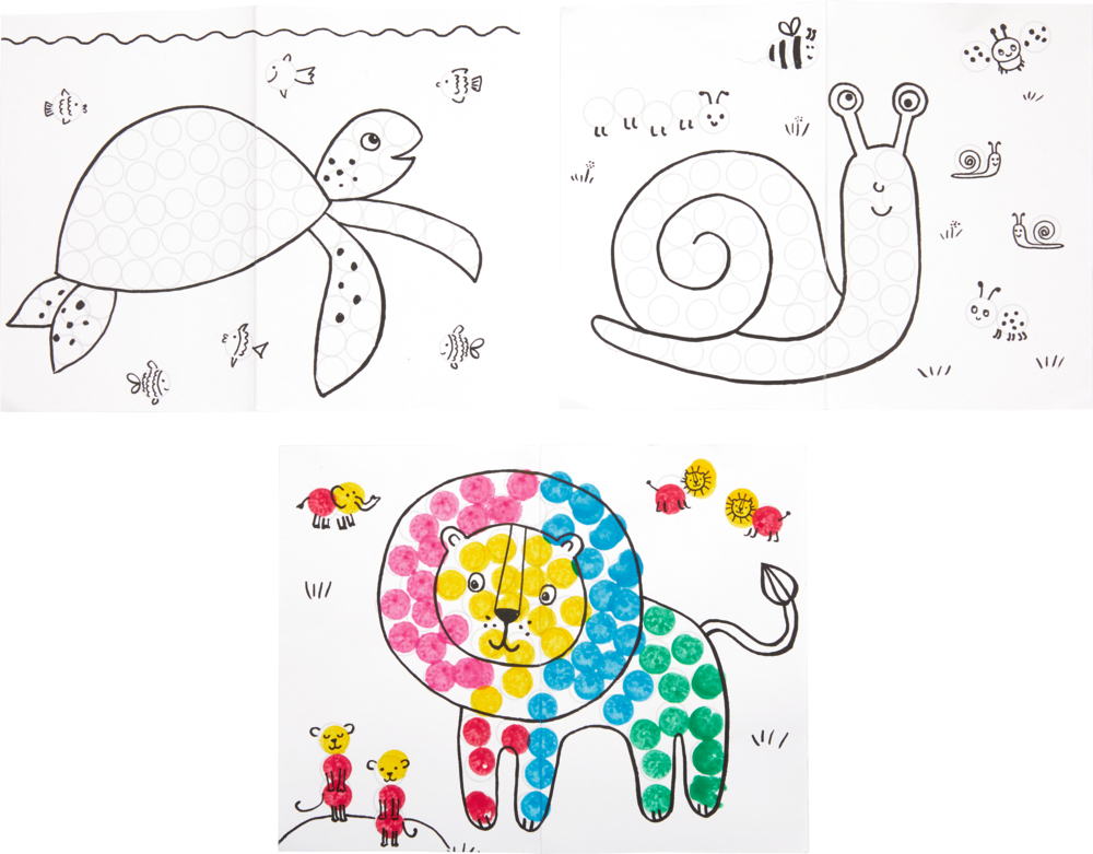 Meine superdicken Stempel-Stifte (Mini-Künstler) bieten kreativen Punktespaß für kleine Künstlerinnen und Künstler ab 3 Jahren. Das Set enthält 5 farbenfrohe Dotmarker in Gelb, Rosa, Rot, Grün und Blau sowie 3 kindgerechte Malvorlagen zum sofortigen Loslegen. Mit den extra dicken Stempelstiften lassen sich spielend leicht lustige Punkte und bunte Muster gestalten – ganz ohne Schmiererei oder Kleckern. Die Farben sind abwaschbar und somit bestens für kleine Kinderhände geeignet.