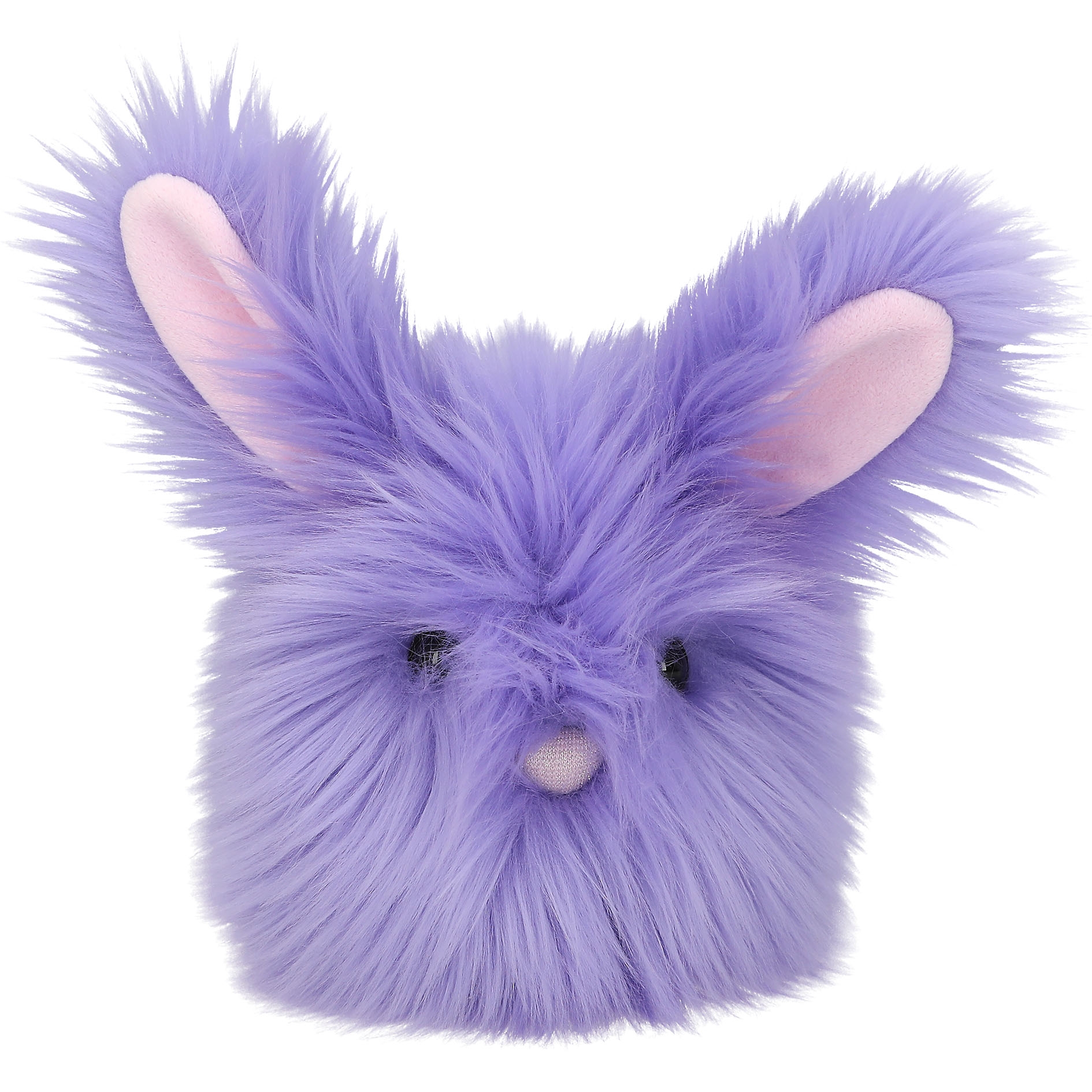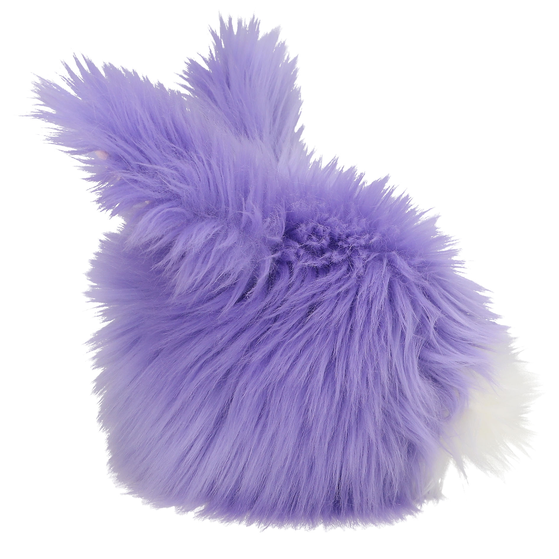 Superweich und flauschig! Der süße lilafarbene Hase aus weichem, langhaarigem Plüsch überzeugt mit schwarzen Kunststoff-Knopfaugen, einer dezent glitzernden rosa Stoffnase, einem kleinen weißen Stummelschwänzchen und langen, hängenden Ohren.