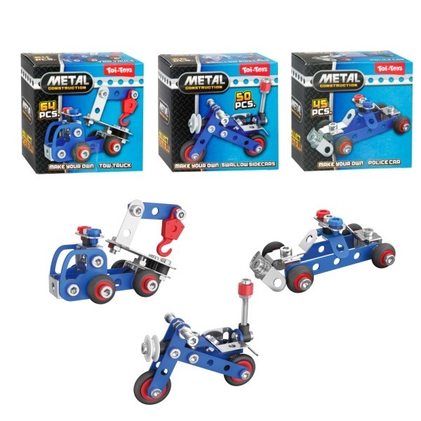 Mit den Mini Metall-Fahrzeug Bausets von Toi-Toys werden kleine Tüftler zu echten Konstrukteuren.