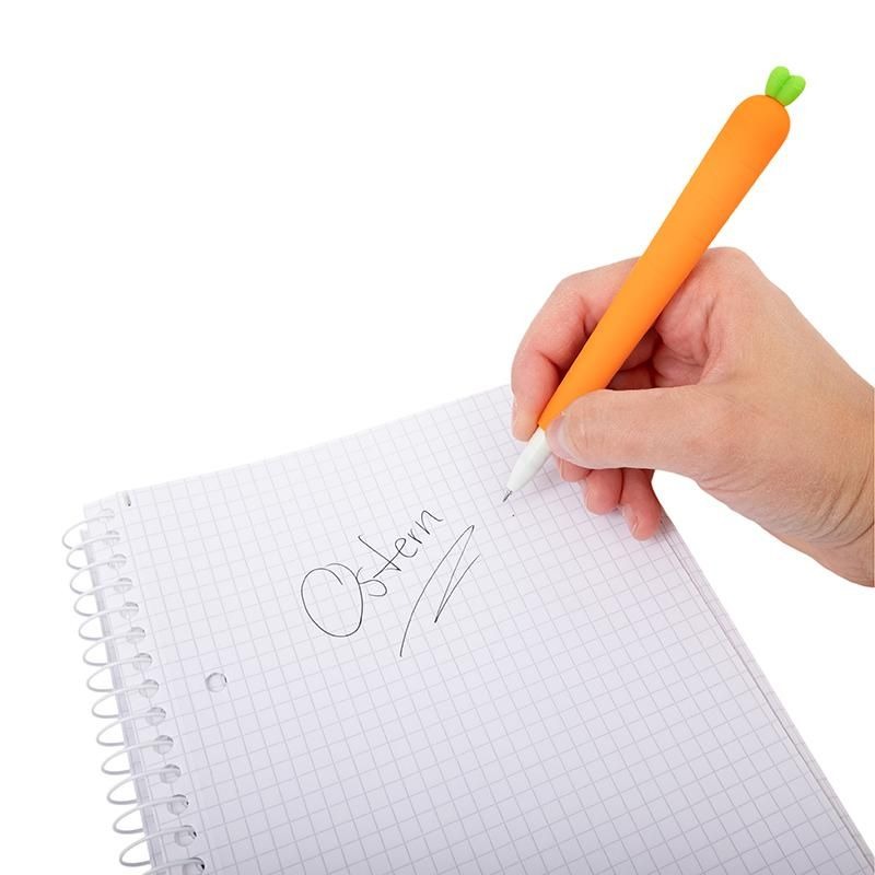 Der Trendhaus Karotten-Tintenroller sorgt mit seinem witzigen Design in Karottenform für Spaß beim Schreiben. Dank der Soft-Touch-Oberfläche aus Silikon liegt der Stift besonders gut in der Hand und bietet ein angenehmes Schreibgefühl – ideal für Schule, Hausaufgaben oder kreative Notizen.