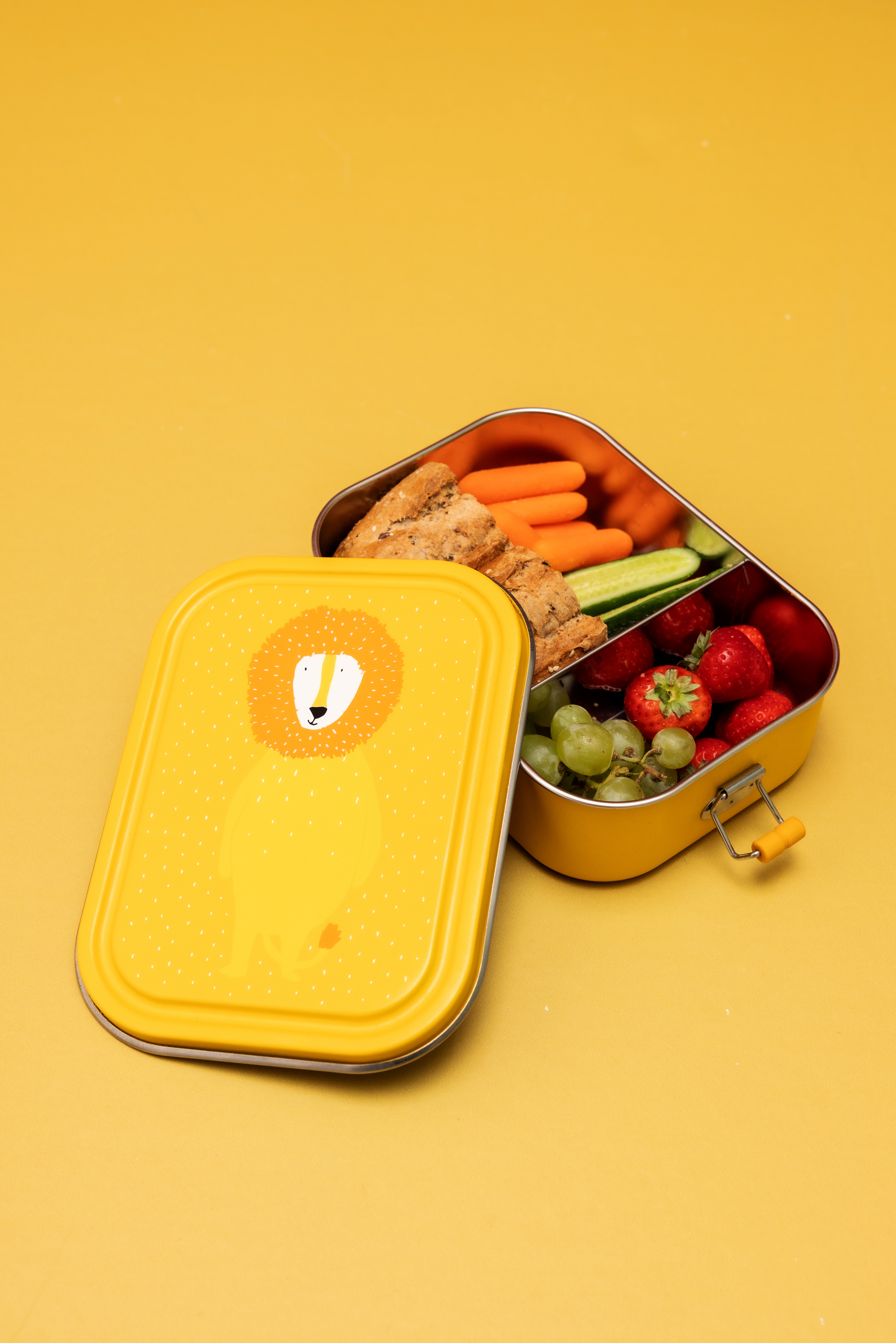 Die größere Lunchbox von TRIXIE bietet viel Platz für eine ausgewogene Mahlzeit unterwegs. Ausgestattet mit einer festen Trennwand, ermöglicht sie die getrennte Aufbewahrung von verschiedenen Lebensmitteln – perfekt, um Snacks und Hauptspeisen frisch und appetitlich zu halten. Gefertigt aus robustem, rostfreiem Edelstahl, ist die Lunchbox nicht nur langlebig, sondern auch frei von schädlichen Chemikalien. Das durchdachte Design mit Silikon-Clips sorgt dafür, dass auch Kinder die Box mühelos öffnen und sicher verschließen können. Ob für die Schule, die Kita oder Ausflüge – diese Lunchbox ist die ideale Lösung für eine gesunde und leckere Mahlzeit unterwegs.