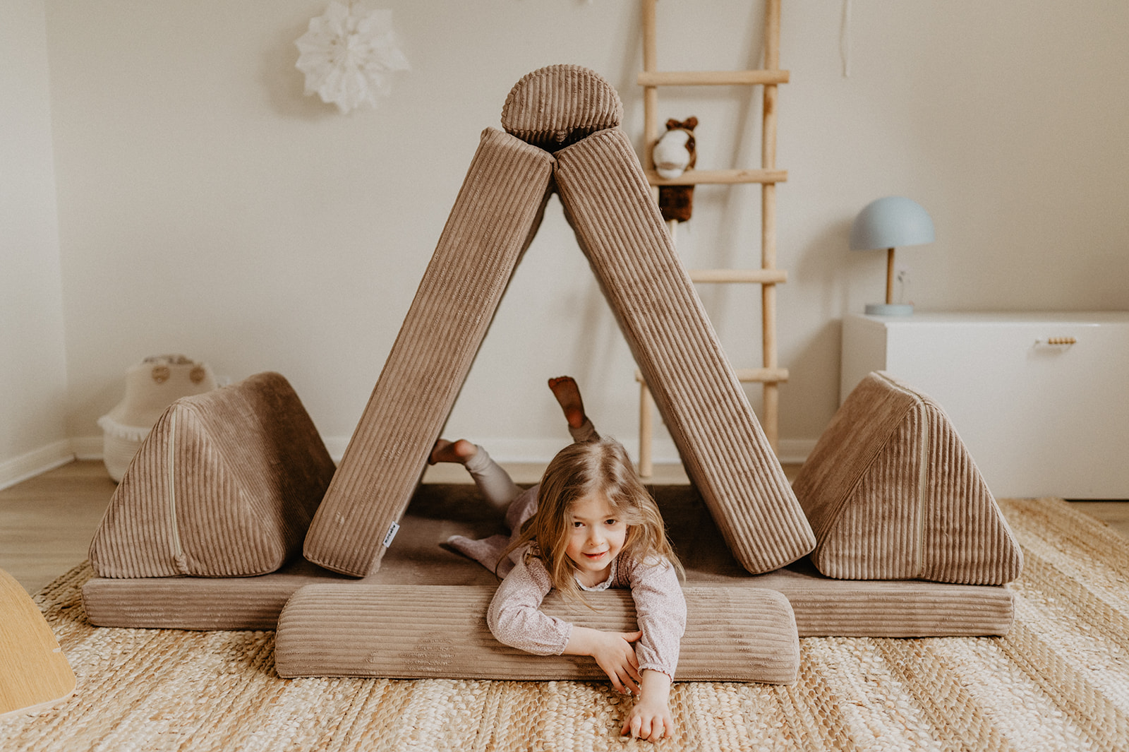 Ob als Liegewiese, Gästebett, Höhle oder gemütliche Kuschelecke – Wumbolino passt sich den Wünschen und Bedürfnissen deiner Kinder an. Die Elemente lassen sich flexibel anordnen und fördern so die Fantasie und Kreativität.