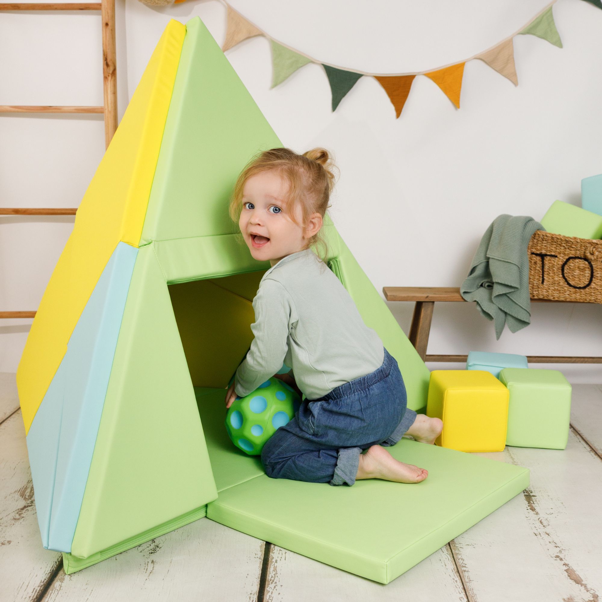 Die multifunktionale 3-in-1 Spielmatte ist ein echtes Allround-Talent für Kinder jeden Alters – schon ab der Geburt geeignet! Ob als weiche Turnmatte, gemütliches Tipi-Zelt oder fantasievolles Spielboot – dieses Produkt wächst mit den Bedürfnissen deines Kindes mit und sorgt für abwechslungsreichen Spielspaß.