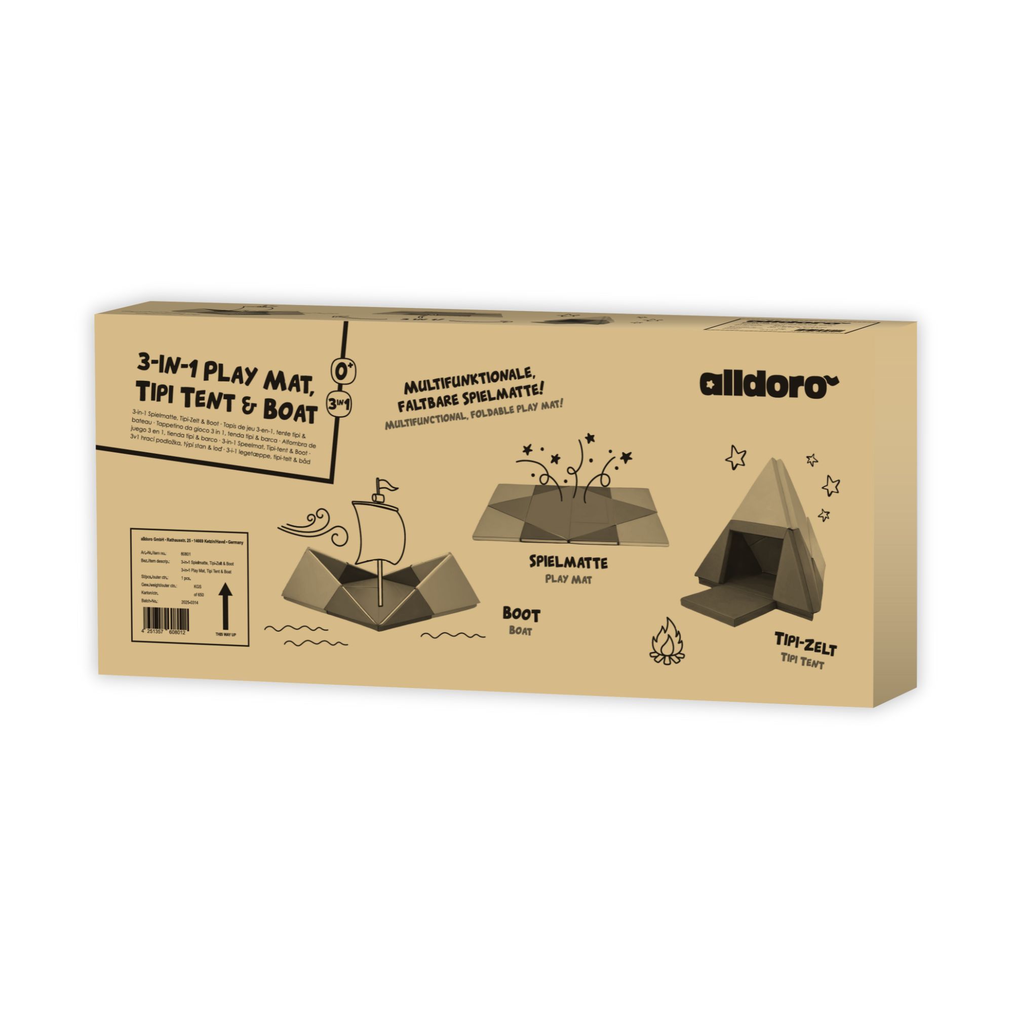 3-in-1 Spielmatte, faltbar zu Tipi-Zelt & Boot