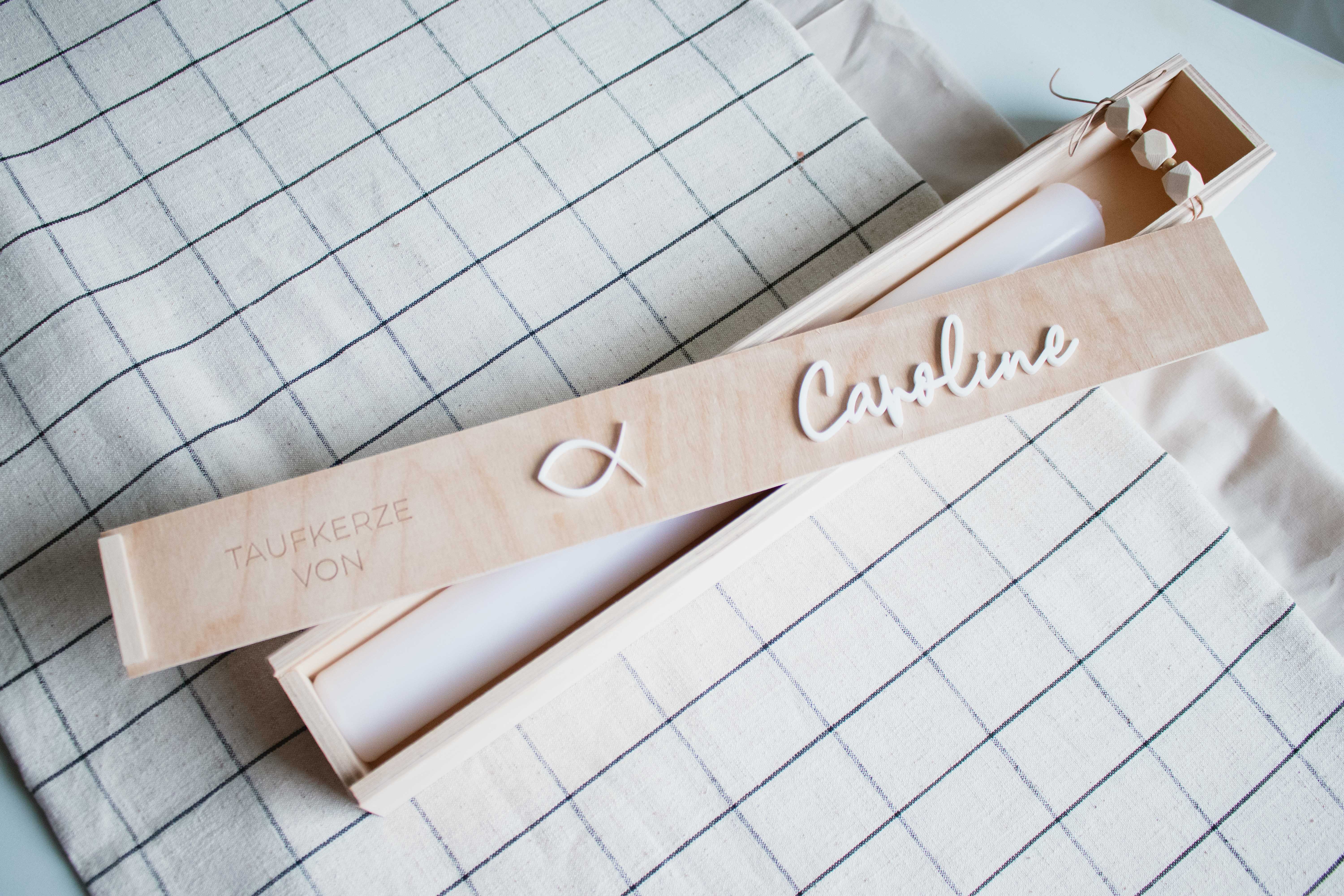 Steht bei euch bald ein besonderes Fest an? Dann stöbert doch durch unsere große Auswahl an personalisierten Geschenken zur Taufe, Kommunion oder Konfirmation. Hier findet ihr tolle Holzkisten für Taufkerzen, Geschenkboxen für Geldgeschenke oder wunderschöne Cake Topper für die Festtagstorte.