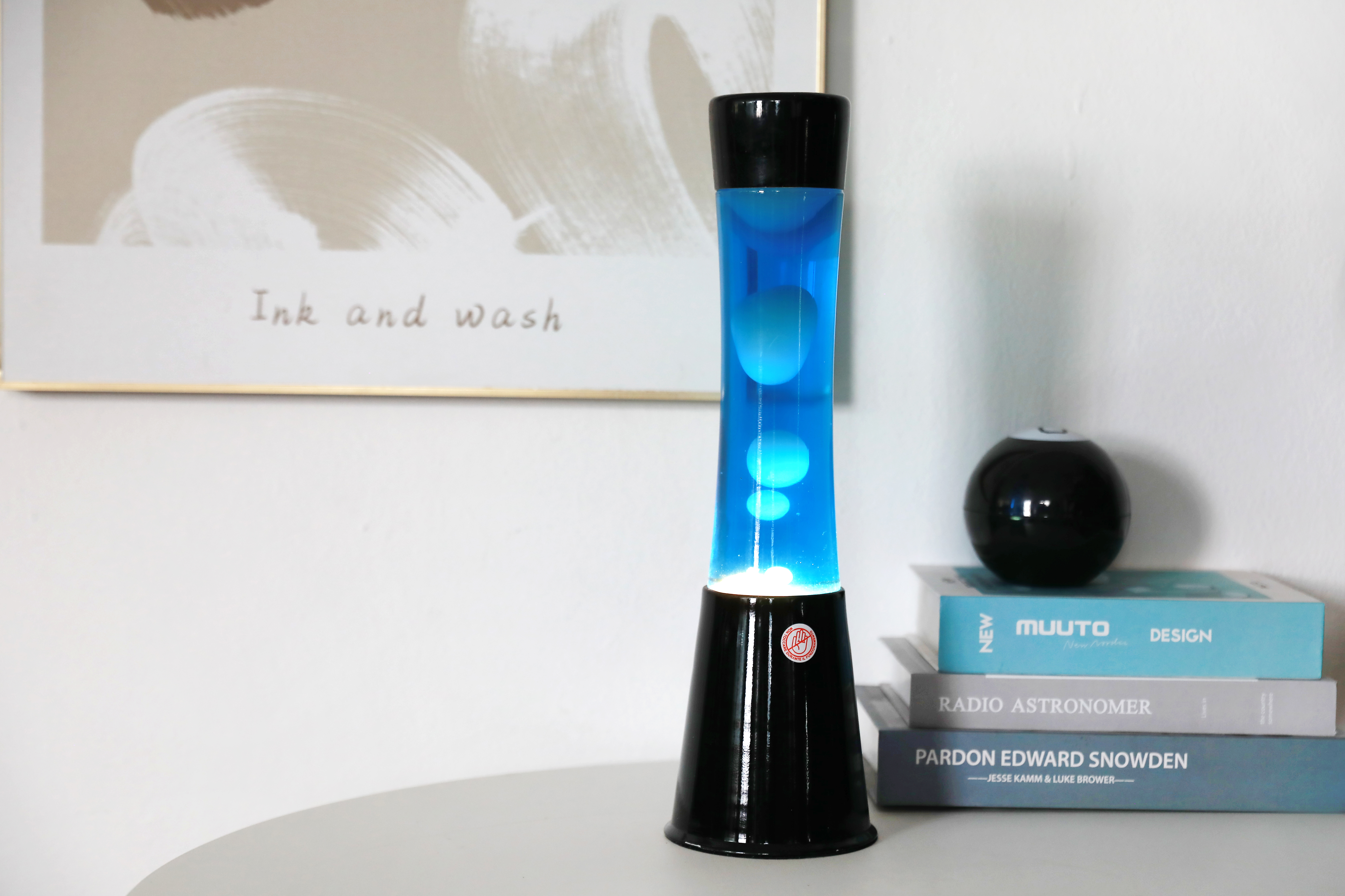 In der schwarzen Basis trifft leuchtend blaues Liquid auf weißes Wachs. Sobald die Lampe eingeschaltet wird, beginnt das Wachs langsam aufzusteigen, zu fließen und wieder abzusinken – ein hypnotisches Farbspiel, das beruhigt und gleichzeitig begeistert.