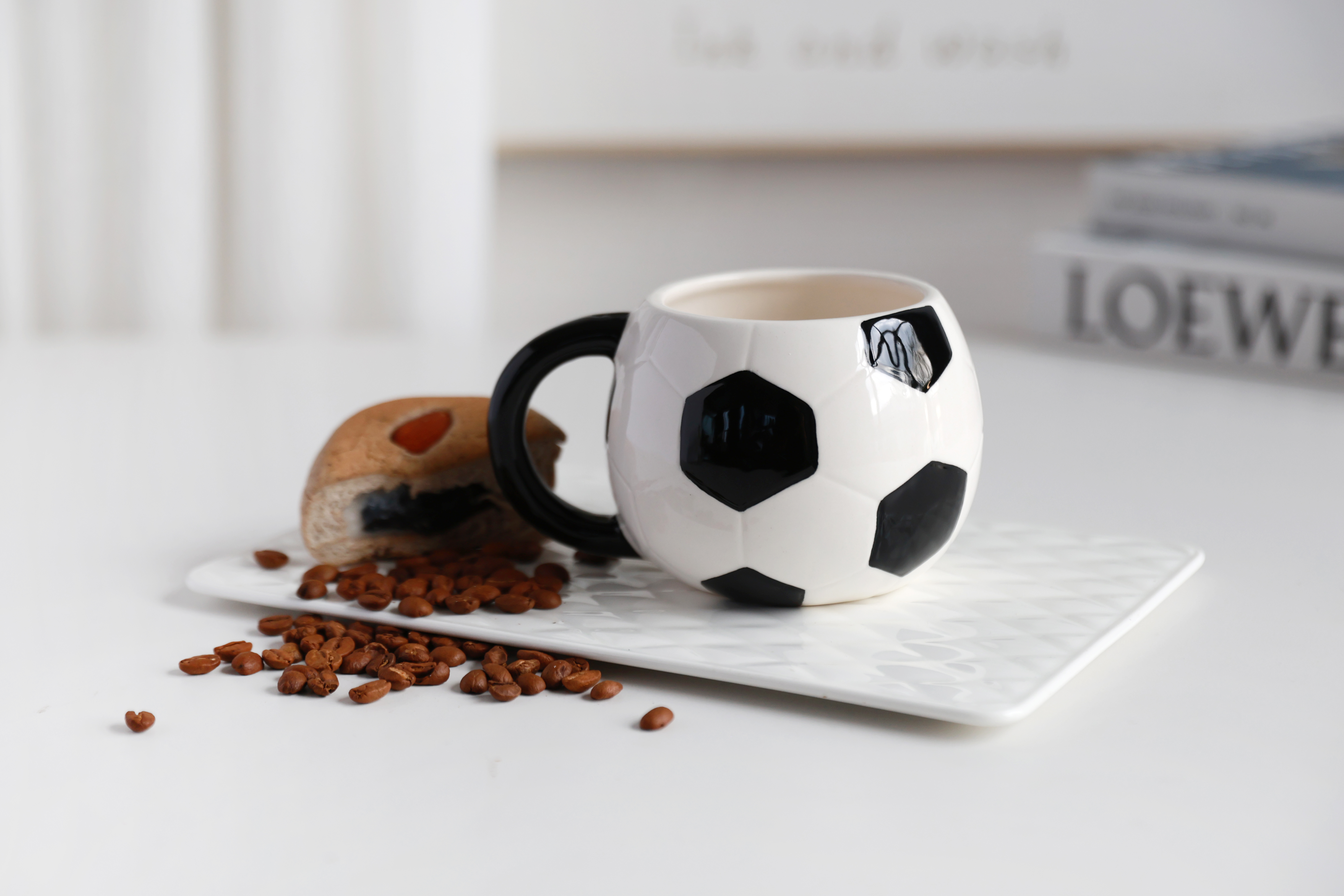 Mit ihrer runden, markanten Form und dem klassischen schwarz-weißen Fußball-Design ist sie ein echter Hingucker. Die „chunky“ Form sorgt für einen besonderen Look und liegt angenehm in der Hand – perfekt für Kakao, Tee oder den morgendlichen Kaffee.