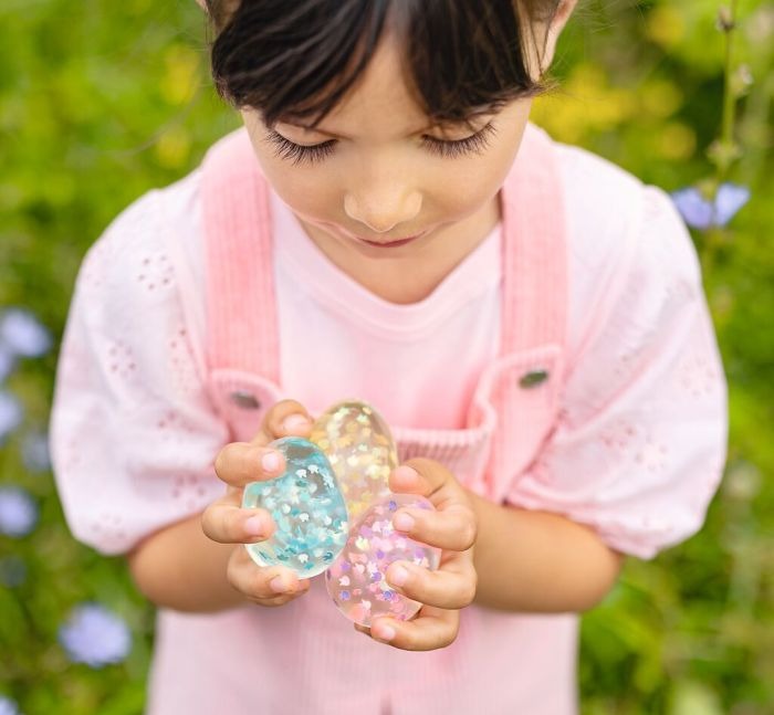 Dieser fröhliche Flummi in Ei-Form sorgt für jede Menge Bewegung und gute Laune. Dank seiner besonderen Form springt er wild und unvorhersehbar in alle Richtungen und begeistert Kinder immer wieder aufs Neue. Das bunte Glitzer-Konfetti mit niedlichen Häschenmotiven macht ihn zu einem echten Hingucker.