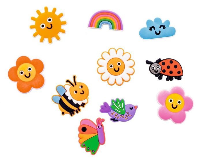 10 bunte Speichen-Clips mit fröhlichen Motiven