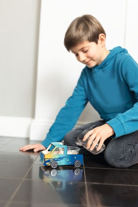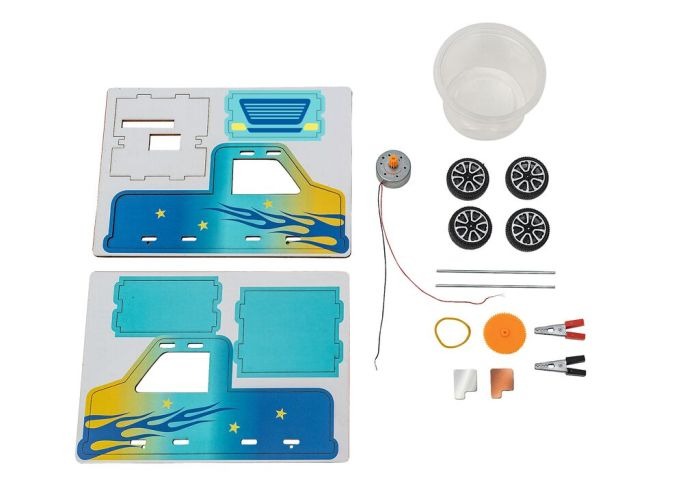 Wie funktioniert eigentlich ein Salzwasserantrieb? Und woher kommt der elektrische Strom, der das Auto antreibt? Ganz ohne Klebstoff und komplizierte kleine Teilchen verwandelt sich dieser Bausatz in ein Elektro-Auto, das mit Salzwasser fährt! Dank der beigelegten Informationen lernen Kinder spielerisch das Phänomen der Bewegungsenergie kennen.