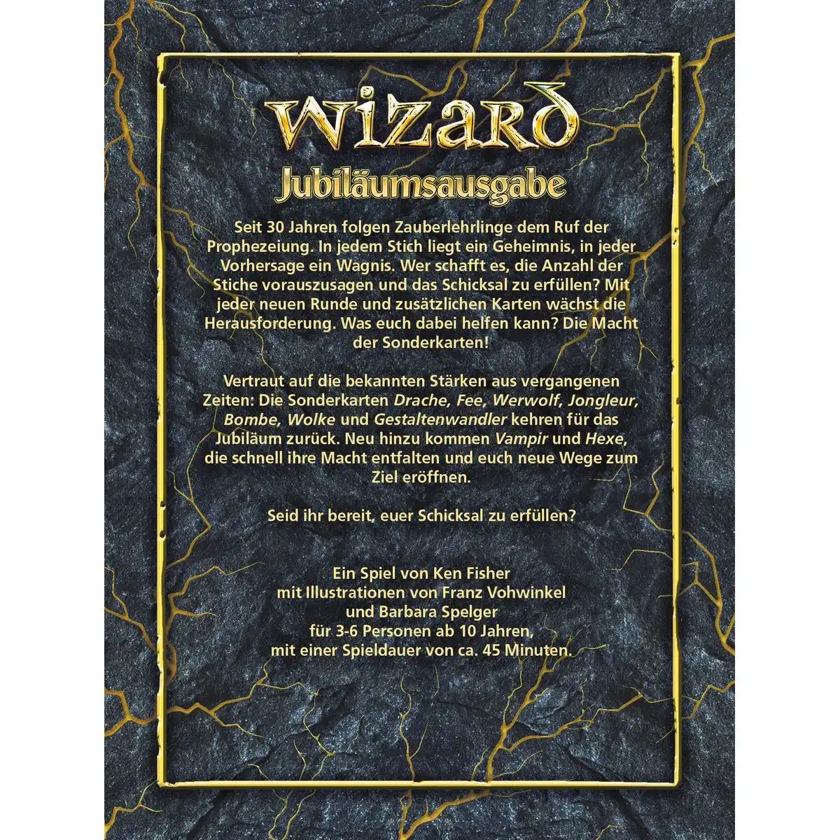 Die Wizard Jubiläums Edition von AMIGO feiert 30 Jahre eines der beliebtesten Stichvorhersage-Spiele weltweit. In diesem spannenden Kartenspiel schlüpfen die Spieler in die Rolle von Zauberlehrlingen und versuchen, ihre Stiche möglichst genau vorherzusagen.