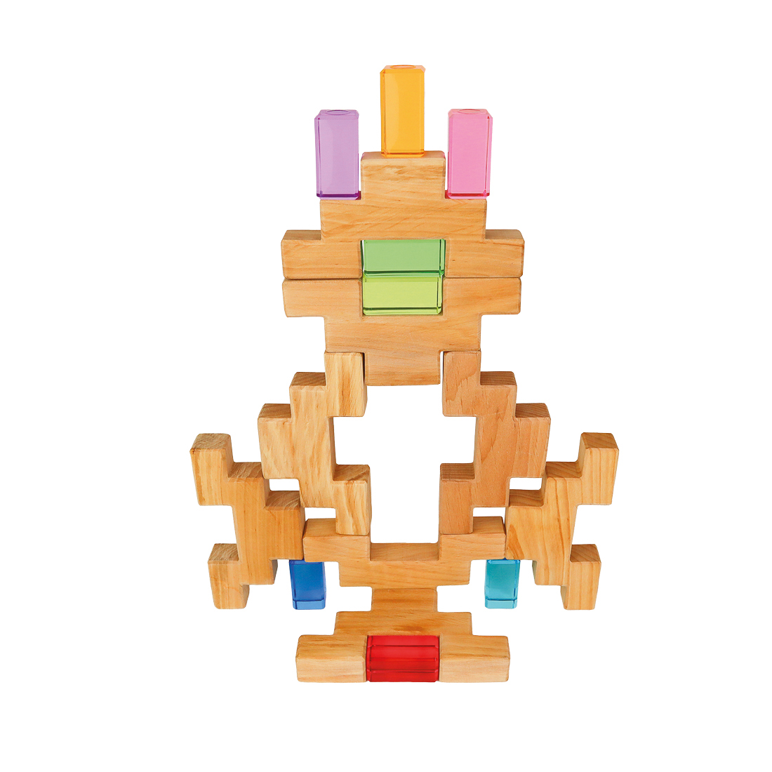 Die vielfältigen Bausteine und geometrischen Formen laden zum Konstruieren, Stapeln und Kombinieren ein. Sie fördern spielerisch das räumliche Denken, die Feinmotorik und die Kreativität – eine perfekte Verbindung aus Spielspaß und Lerneffekt.