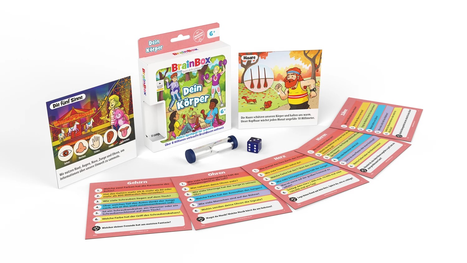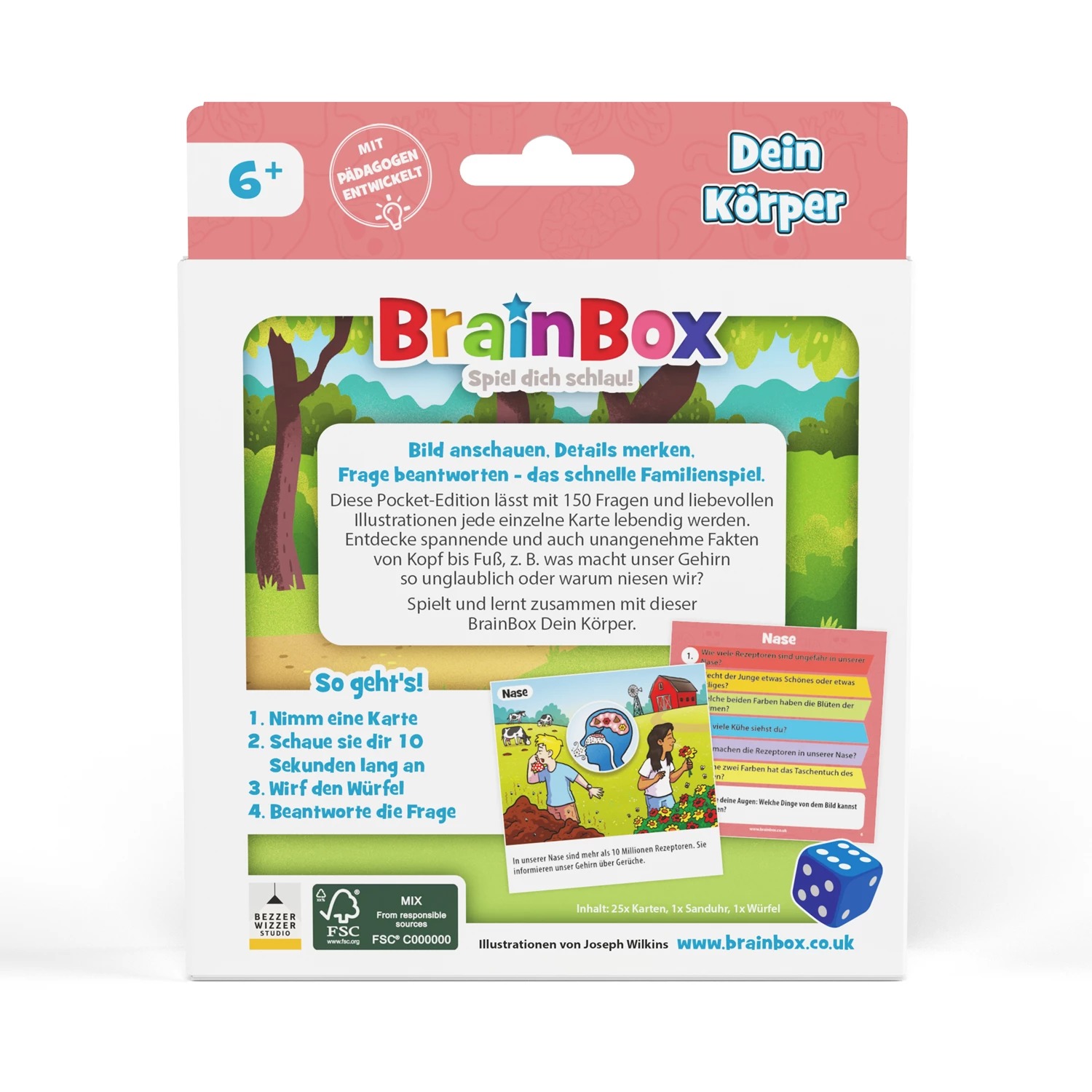 So funktioniert’s: Bild ansehen, Details einprägen, würfeln und die passende Frage beantworten – und schon geht der Lernspaß los! Die Pocket Edition „Dein Körper“ bietet 150 spannende Fragen rund um den menschlichen Körper, verteilt auf 25 liebevoll gestalteten Karten. Von faszinierenden bis hin zu kuriosen Fakten – hier erfährst du alles von Kopf bis Fuß. Eine unterhaltsame Art, mehr über deinen eigenen Körper zu lernen – kompakt, informativ und perfekt für unterwegs!