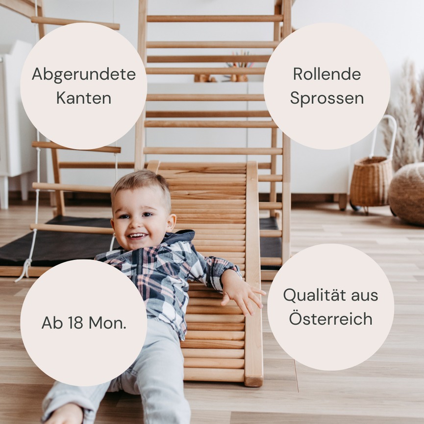 Dabei fördert die Rutsche spielerisch Motorik, Balance, Körperspannung und Koordination, während Kinder ihren Körper aktiv wahrnehmen und neue Bewegungsformen ausprobieren.