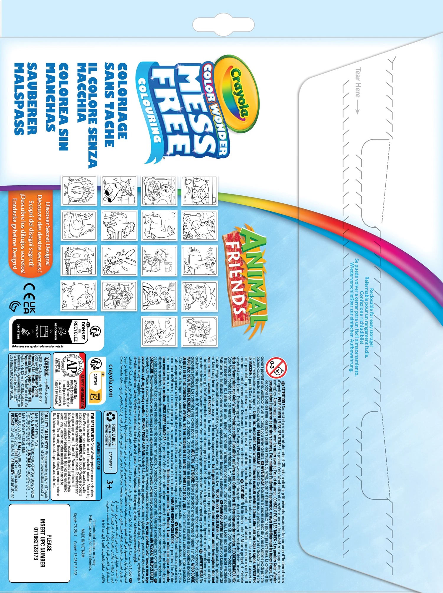 Mit dem Color Wonder Tierfreunde Ausmalset von Crayola wird Malen zum sauberen Vergnügen! Die speziellen Color Wonder Marker besitzen eine farblose Filzstift-Spitze, die ihre Farbe erst auf dem beiliegenden Spezialpapier entwickelt. So entstehen keine Flecken auf Kleidung, Möbeln oder Wänden – perfekt für sorgenfreien Malspaß.