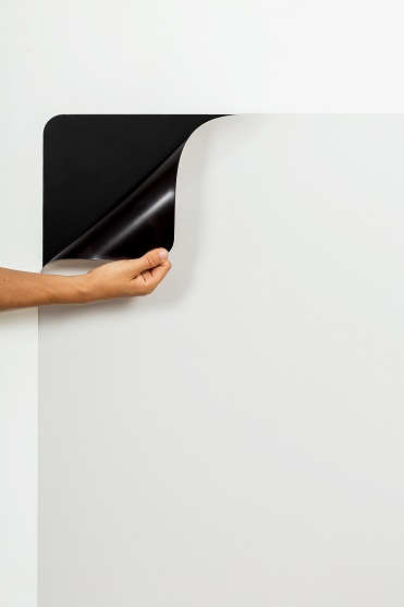 Diese Magnettafel kannst du an die Wand kleben. Sie ist 57x90cm groß und 0,6mm dick.