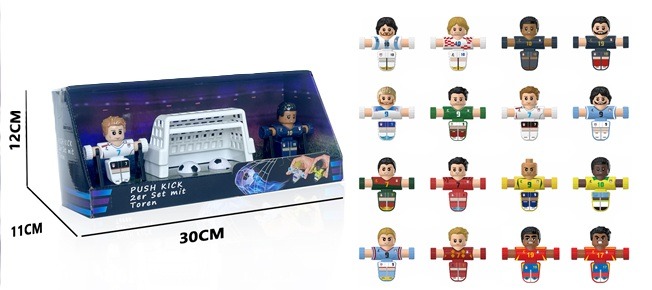Inhalt: 2 Spielerfiguren, 2 Fußbälle und 2 Tore