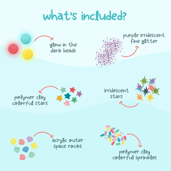 Im Space-Set sind unter anderem Sterne und leuchtende Kugeln enthalten – perfekt für spannende Weltraum-Abenteuer!