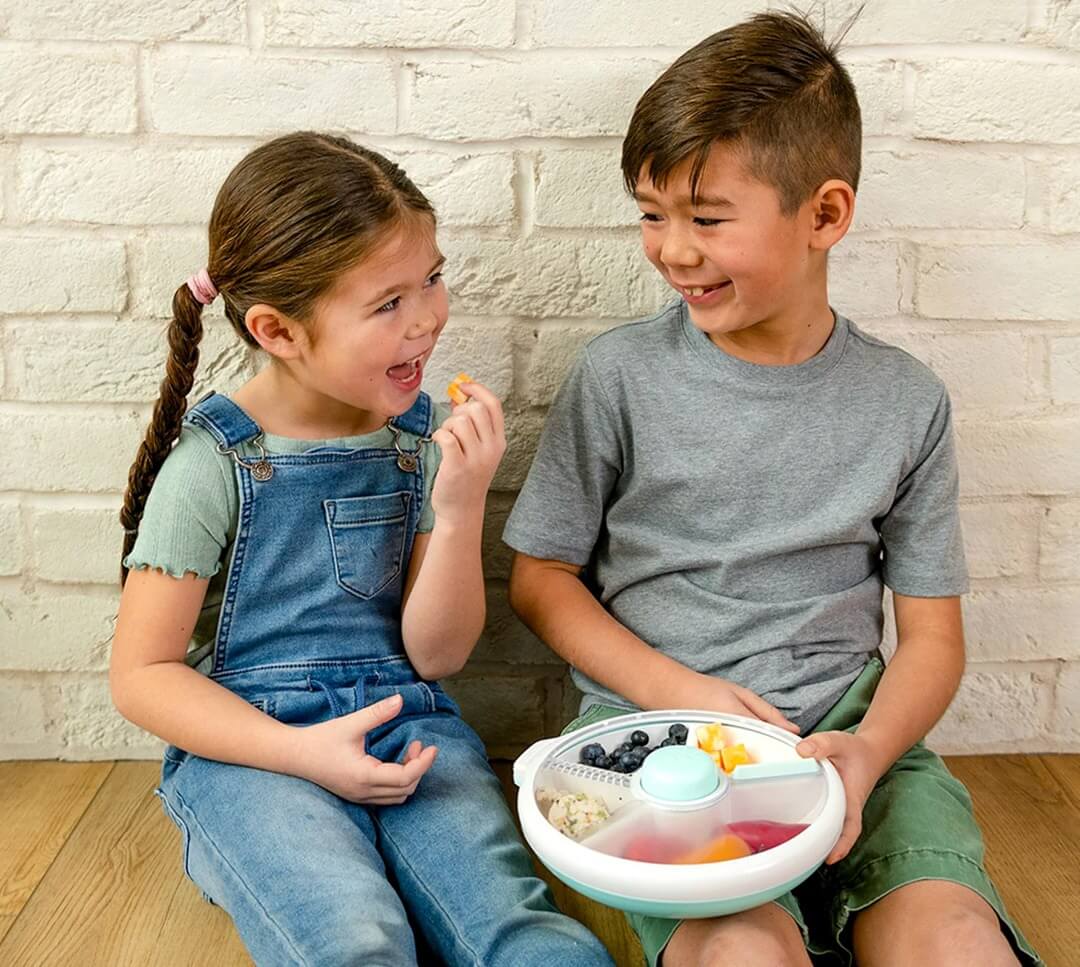 Drück den Knopf und los geht’s: Mit dem großen GoBe SnackSpinner wird Snacken zum Erlebnis! Der drehbare Innenteller bringt Bewegung in deine Pause – mit jedem Druck erscheint ein neues Fach. In das große Fach passt zum Beispiel ein halbes Sandwich, während die drei kleineren Platz für Obst, Gemüse oder kleine Snacks bieten. Alles bleibt sauber getrennt, und dank des transparenten Deckels behältst du immer den Überblick. Perfekt für unterwegs – ob im Kindergarten, in der Schule oder auf Reisen. Die Snackbox ist leicht, handlich und ideal für kleine Snack-Fans ab 3 Jahren.