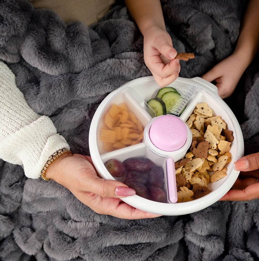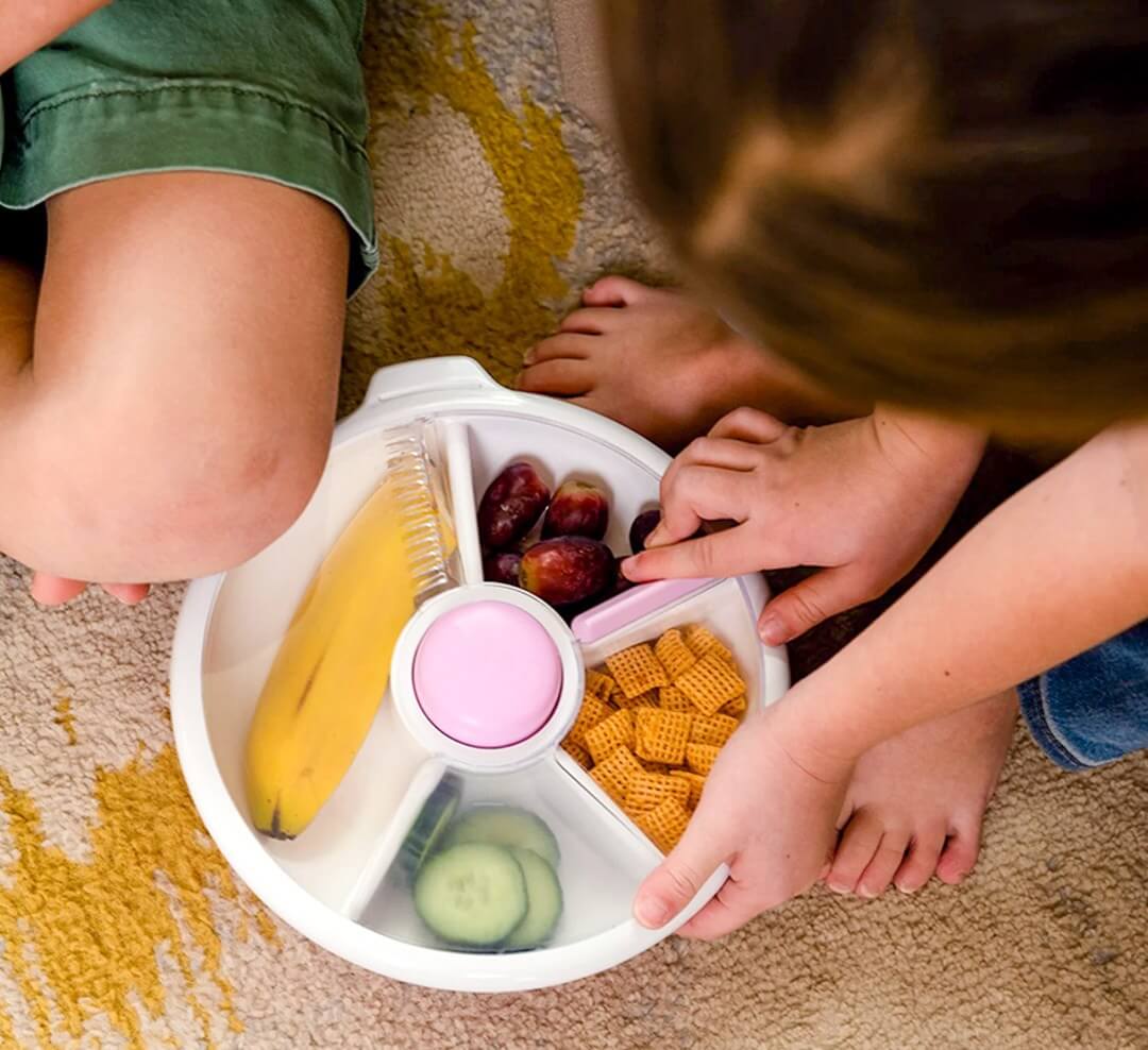 Drück den Knopf und los geht’s: Mit dem großen GoBe SnackSpinner wird Snacken zum Erlebnis! Der drehbare Innenteller bringt Bewegung in deine Pause – mit jedem Druck erscheint ein neues Fach. In das große Fach passt zum Beispiel ein halbes Sandwich, während die drei kleineren Platz für Obst, Gemüse oder kleine Snacks bieten. Alles bleibt sauber getrennt, und dank des transparenten Deckels behältst du immer den Überblick. Perfekt für unterwegs – ob im Kindergarten, in der Schule oder auf Reisen. Die Snackbox ist leicht, handlich und ideal für kleine Snack-Fans ab 3 Jahren.
