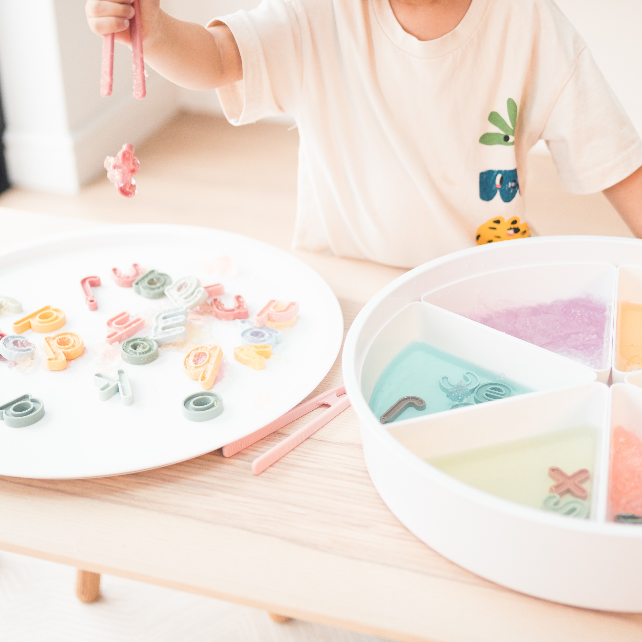 Entdecke spielerisches Lernen mit dem Set aus 26 Kleinbuchstaben, die in einer praktischen, waschbaren Aufbewahrungstasche geliefert werden. Im Gegensatz zu herkömmlichen Schaumstoff- oder Plastikbuchstaben, die in sensorischen und kreativen Spielumgebungen schnell beschädigt oder unbrauchbar werden können, sind unsere Silikon-Alphabet-Buchstaben robust und vielseitig einsetzbar. Hergestellt aus hochwertigem, ungiftigem Silikon, sind die Buchstaben langlebig, wasserfest und perfekt für den Einsatz in jeder Spielsituation – ob drinnen oder draußen, trocken oder nass. Sie ermöglichen es Eltern und Pädagogen, spannende, sensorische Lernerfahrungen zu schaffen, die frühzeitig die Sprach- und Leseentwicklung fördern. Dank ihres eingearbeiteten Profils lassen sich die Buchstaben einfach in sensorische Materialien wie Sand oder Knete drücken. So wird das Buchstabenlernen zu einem echten Tast-Erlebnis! Die erhabenen Ränder der Buchstaben bieten außerdem die Möglichkeit, sie mit Reis, Wasser oder anderen Materialien zu befüllen – ideal zur Förderung der Feinmotorik und Kreativität.