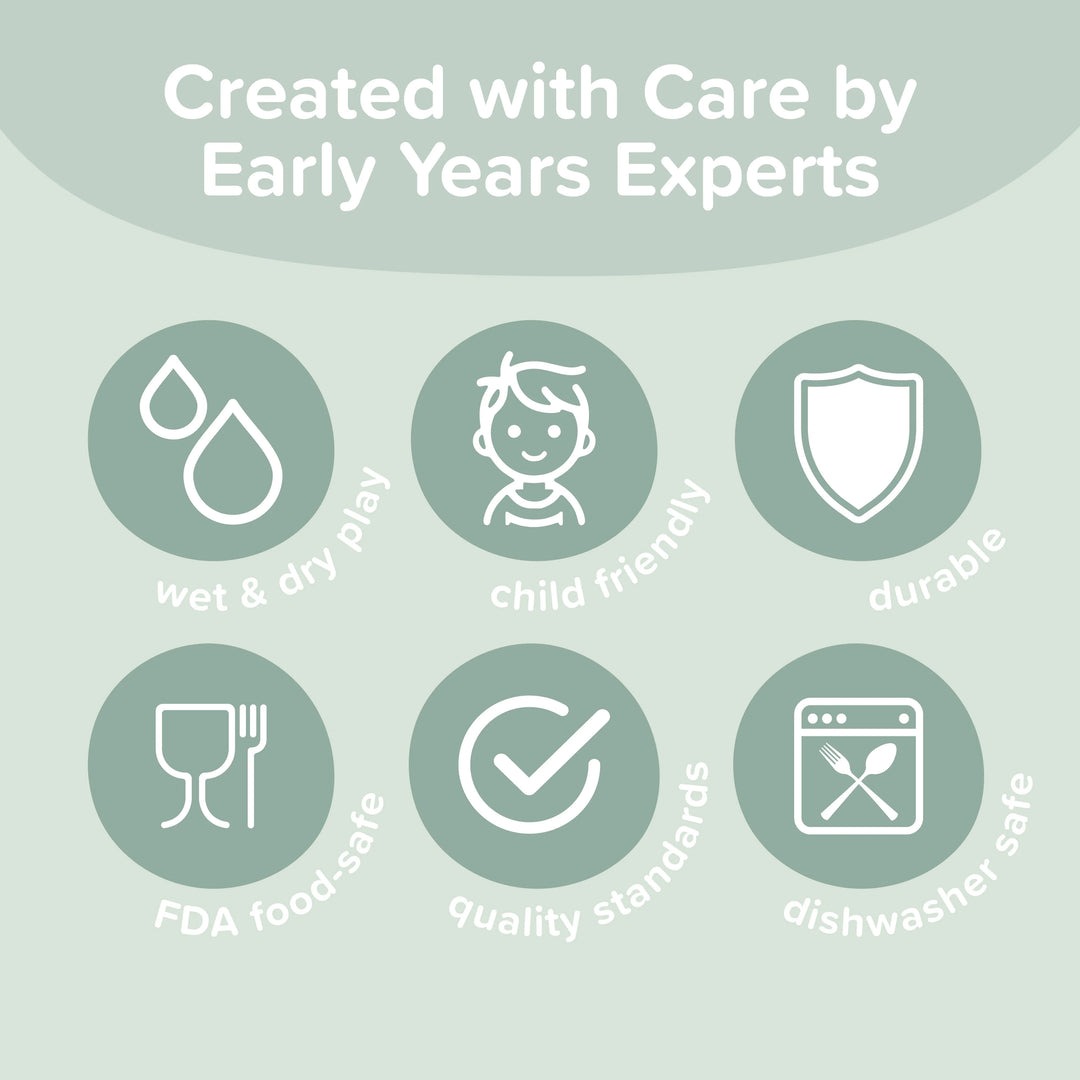 Richtlinien für den sicheren Gebrauch Beaufsichtigung erforderlich - Beaufsichtigen Sie kleine Kinder immer, wenn sie diese Buchstaben verwenden, vor allem bei sensorischen oder schmutzigen Spielaktivitäten. Richtige Aufbewahrung - Bewahren Sie die Buchstaben in der waschbaren Tasche außerhalb der Reichweite von Kindern unter 3 Jahren auf. Vorsicht bei unordentlichem Spiel - Achten Sie darauf, dass Kinder die Buchstaben nicht in den Mund nehmen, wenn sie sie in Wasser, Sand oder anderen sensorischen Materialien verwenden. Reinigung & Hygiene - Die Buchstaben sind aus ungiftigem, BPA-freiem Silikon hergestellt und können leicht mit warmem Seifenwasser gewaschen oder in der Spülmaschine gereinigt werden. Wenn Sie diese Richtlinien befolgen, können Sie sicherstellen, dass die Spielzeit sicher, lustig und bereichernd für kleine Lernende bleibt. Übersetzt mit DeepL.com (kostenlose Version)