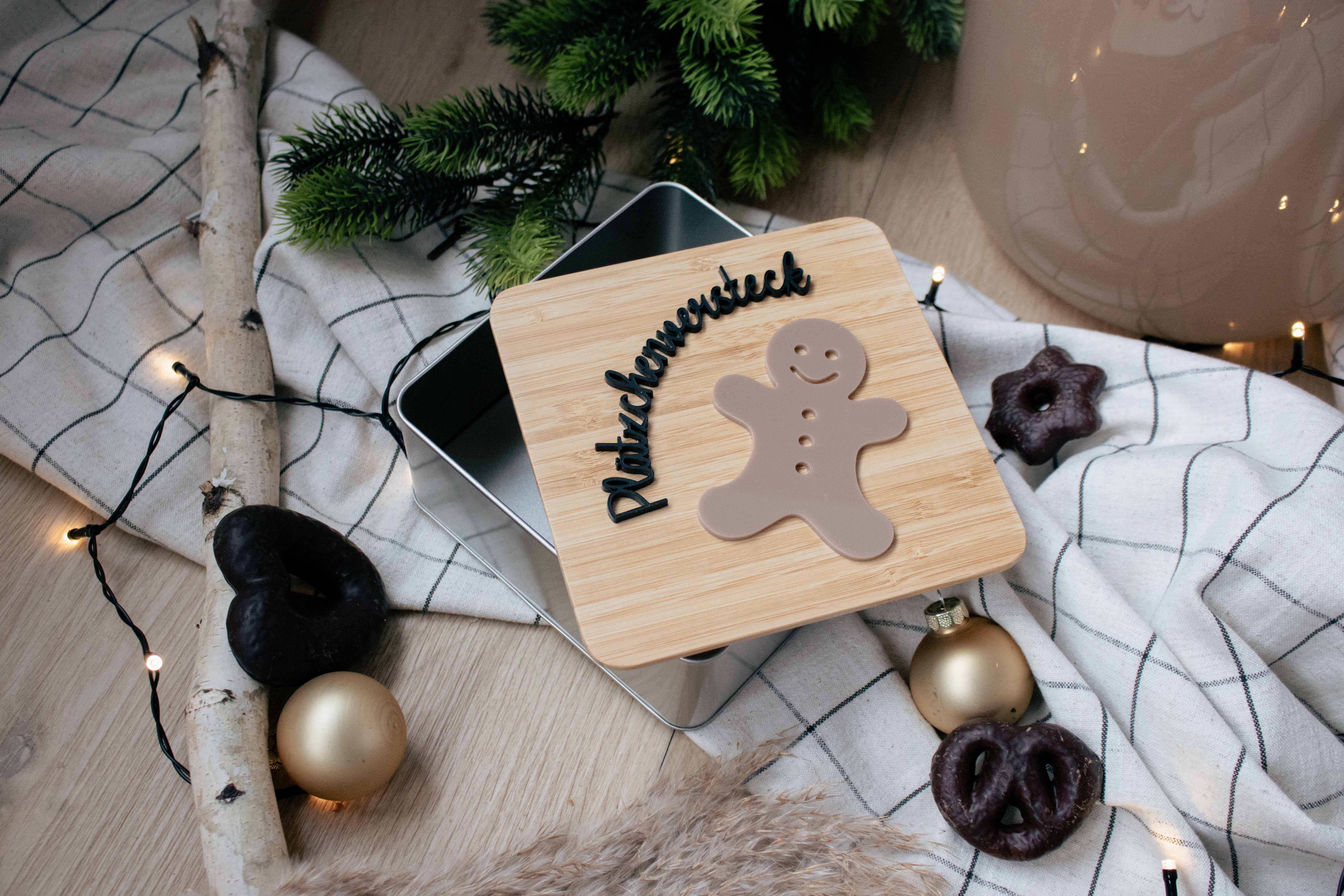 Verschenke deine Plätzchen stilvoll in dieser schönen Blechdose mit Bambusdeckel.