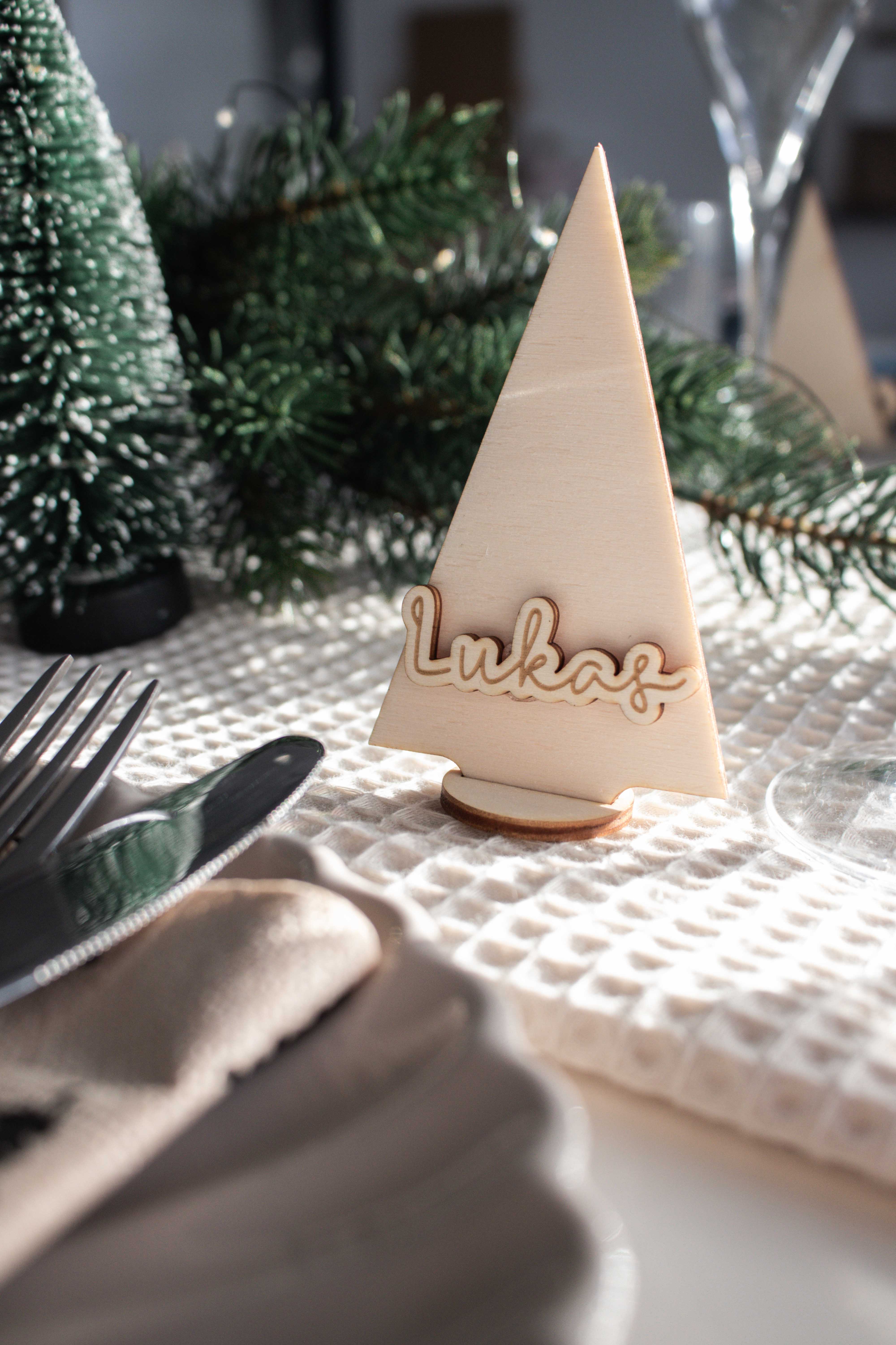 Verleihe deiner Festtafel eine besondere, weihnachtliche Note mit diesen eleganten Platzkärtchen in Tannenbaumform! Die aus hochwertigem Holz gefertigten Kärtchen sind mit dem Namen deiner Gäste graviert und bieten eine stilvolle und persönliche Dekoration für den Weihnachtstisch. Perfekt für festliche Anlässe und als kleines Andenken für jeden Gast!