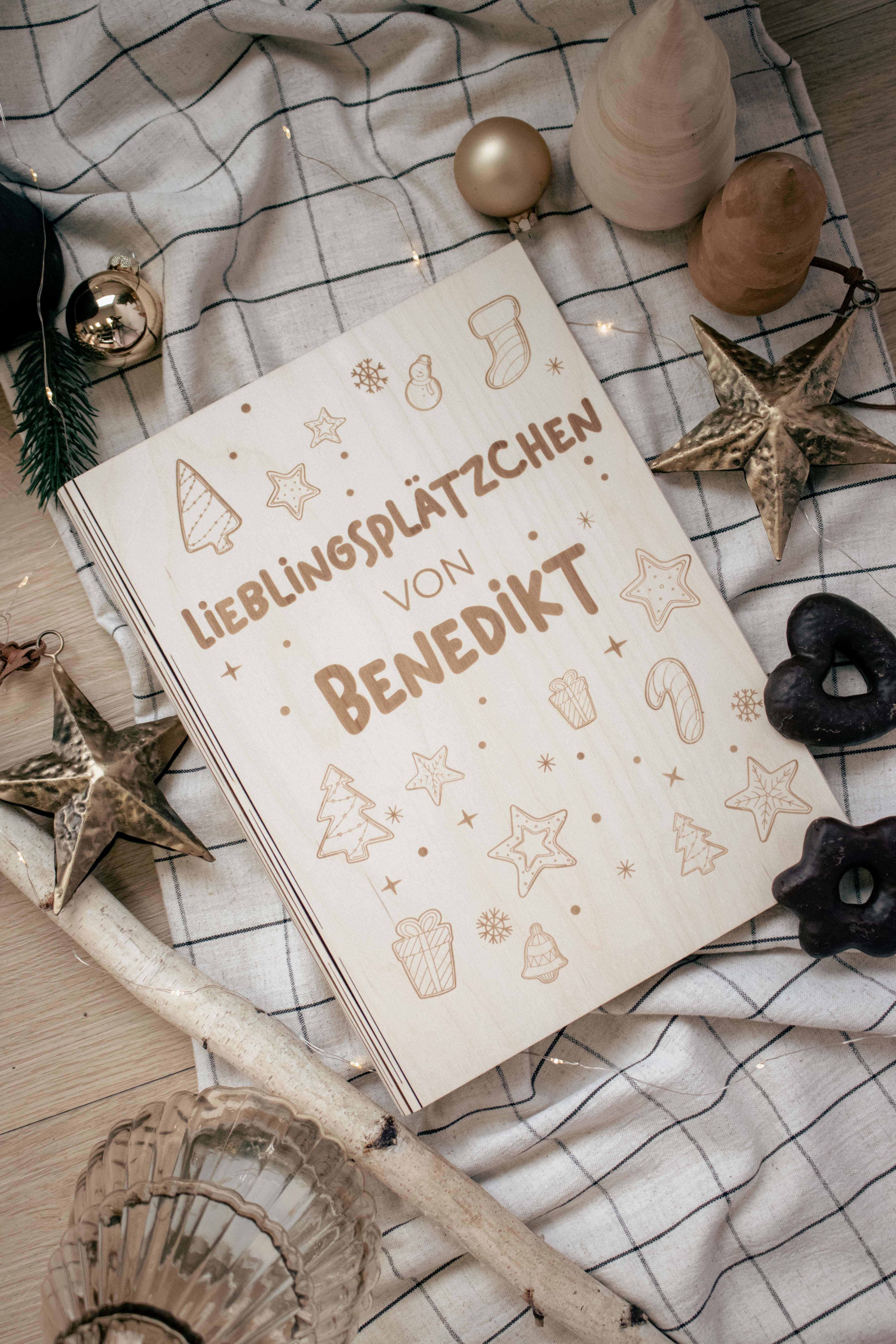 Der Invy Design Rezepthefter „Lieblingsplätzchen von…“ ist die perfekte Aufbewahrung für all deine liebsten Weihnachtsrezepte. Aus hochwertigem Holz gefertigt, begeistert er mit liebevoll gravierten, weihnachtlichen Motiven – von Sternen über Tannenbäume bis zu süßen Plätzchen. Die stabile Verarbeitung macht den Hefter langlebig, während das elegante Design ihn zum schönen Blickfang in jeder Küche macht. Ideal zum Sammeln, Organisieren oder als besonderes Geschenk für Hobbybäcker*innen.