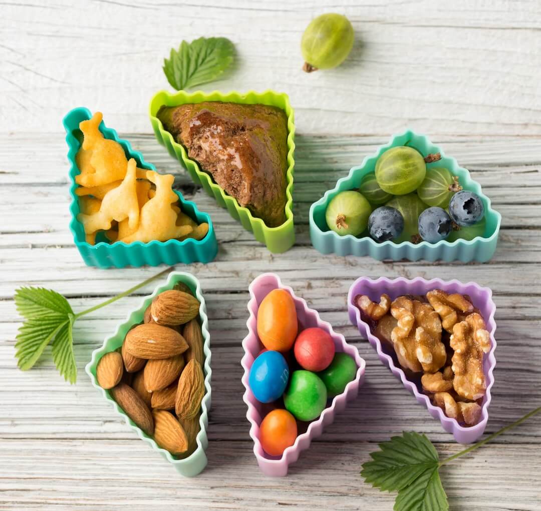 Bunte Silikonförmchen von LEKKABOX für deine Brotdose. Diese 4 kleinen, Triangel Förmchen machen deine Lunchbox noch bunter und praktischer. Sie helfen dir, dein Essen sauber zu trennen, so bleibt alles an seinem Platz. Perfekt für Käsewürfel, Nüsse, Obst oder kleine Leckereien. Das weiche, biegsame Silikon passt sich super an und findet in jeder Ecke deiner Brotdose einen Platz. Du kannst damit sogar Mini-Muffins, Pudding oder Wackelpudding machen! Einfach backen, kühlen und ab in die Lunchbox. Mit diesen fröhlichen Förmchen wird jede Mahlzeit zum kleinen Abenteuer.