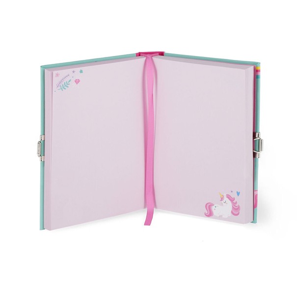 Mit seinem liebevoll illustrierten Hardcover im Einhorn-Design lädt es Kinder dazu ein, ihre Erlebnisse festzuhalten – ob schöne Momente, Wünsche oder kleine Geheimnisse. Das integrierte Vorhängeschloss sorgt dafür, dass alles sicher vor neugierigen Blicken geschützt bleibt.