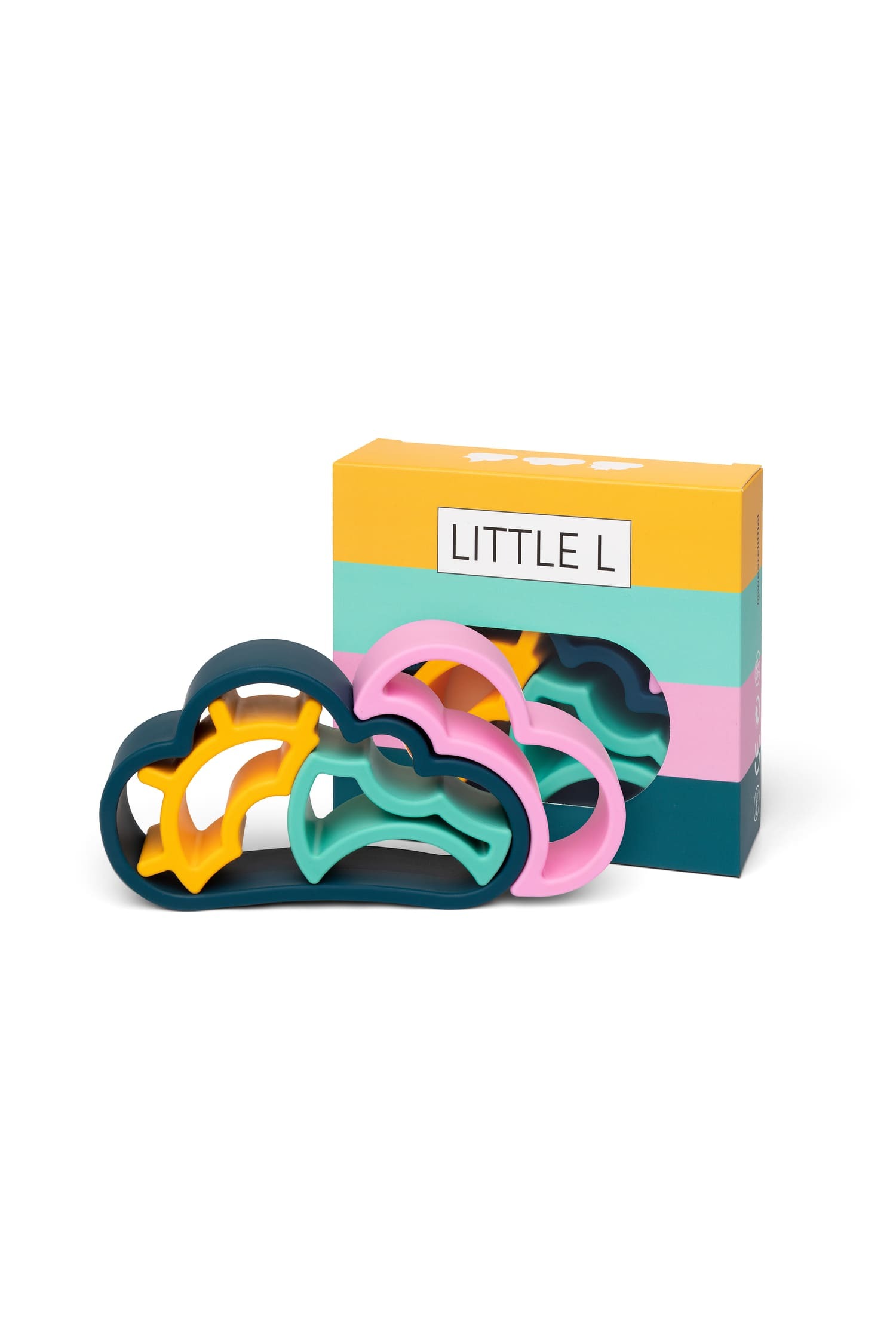 Die Little L Silikonfiguren Himmelselemente sind ein sensorisches Spielzeug für Kinder ab 10 Monaten und unterstützen die frühe kindliche Entwicklung durch freies, entdeckendes Spielen.